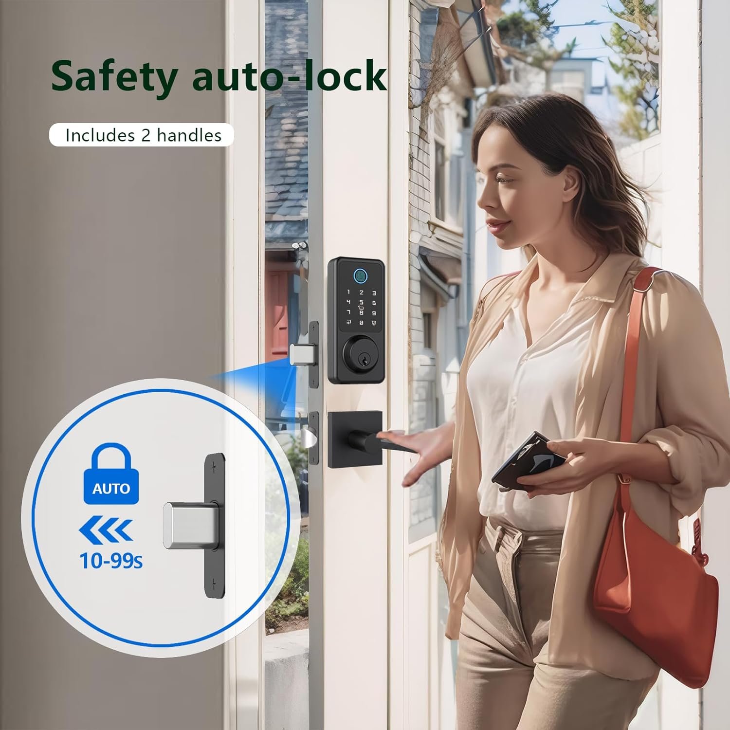 Smart TTlock App Control: fingerprint door lock In the APP, you can set 200 passcodes, permanent or one-time, provide a unique code for each guest, friend, worker, or handyman, and you can also customize the code for a specific date and time, very reliable. In the app, you can view entry and exit logs in real-time, monitor the power, freely set 0~60s automatic lock, etc., If you go to work or travel, vacation, The real-time electronic operation log provides full control over your home security