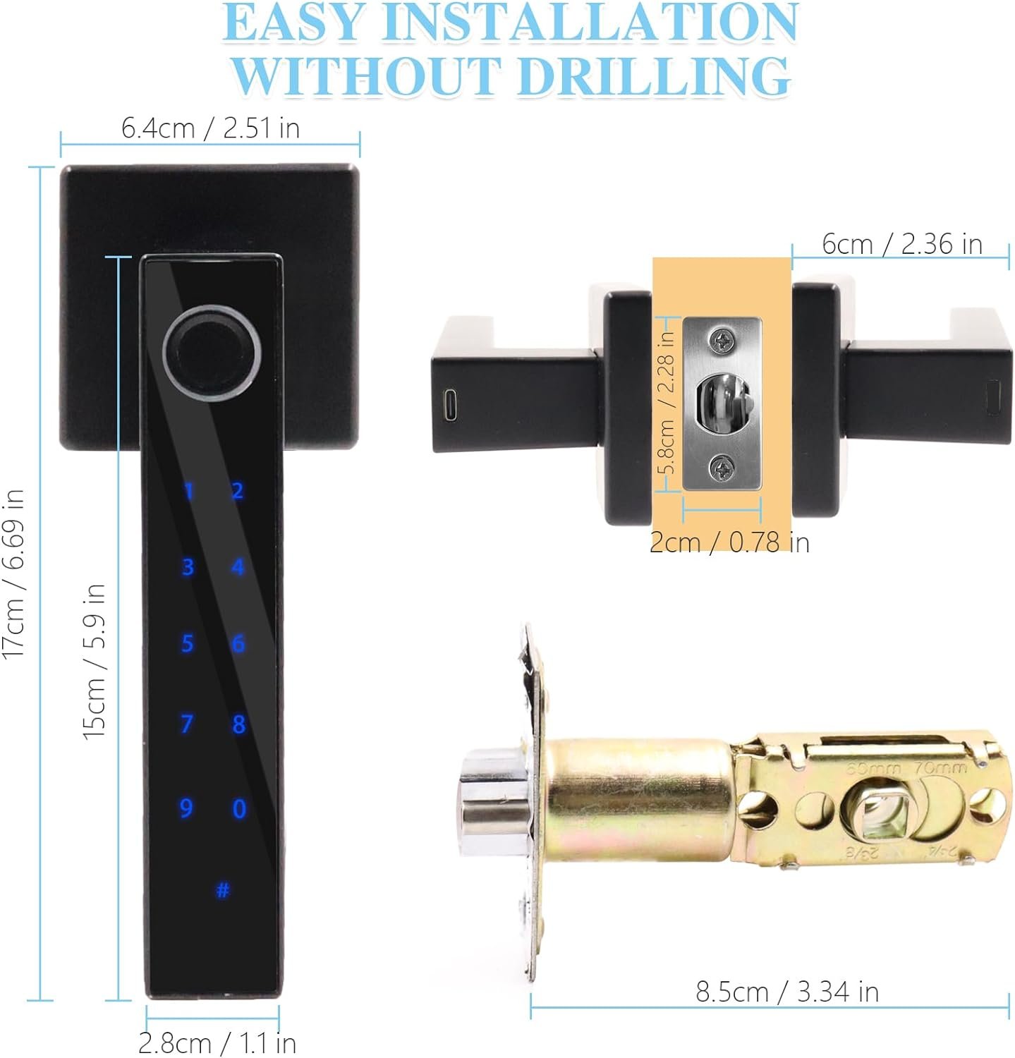 【Easy Installation】: The bedroom smart door lock is designed to fit US standard door, Backset 2-3/8″(60mm) and 2-1/8″(70mm), door thicknesses from 1-3/8” to 2”(35mm -50mm). No extra drilling. Suitable for left and right doors. Check your door size before purchase.