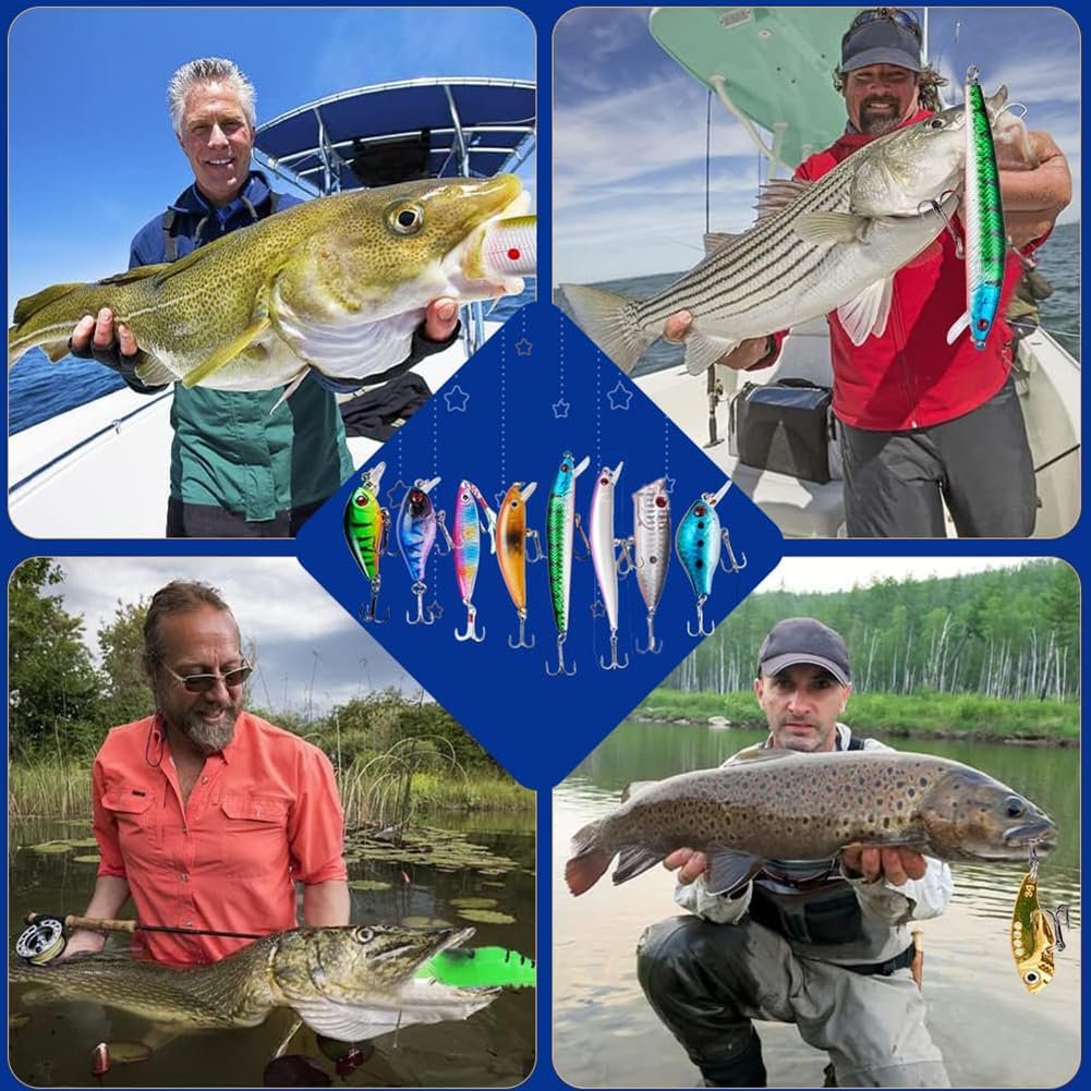 【FRESHWATER OR SALTWATER PERFORMANCE】Our baits can handle different water conditions with confidence. Whether in good freshwater or saltwater shores, our versatile lure set makes it easy to catch; it’s perfect for fishing for trout, bass and more and is a must-have for every angler, from beginners to experienced anglers. Selection of gifts.