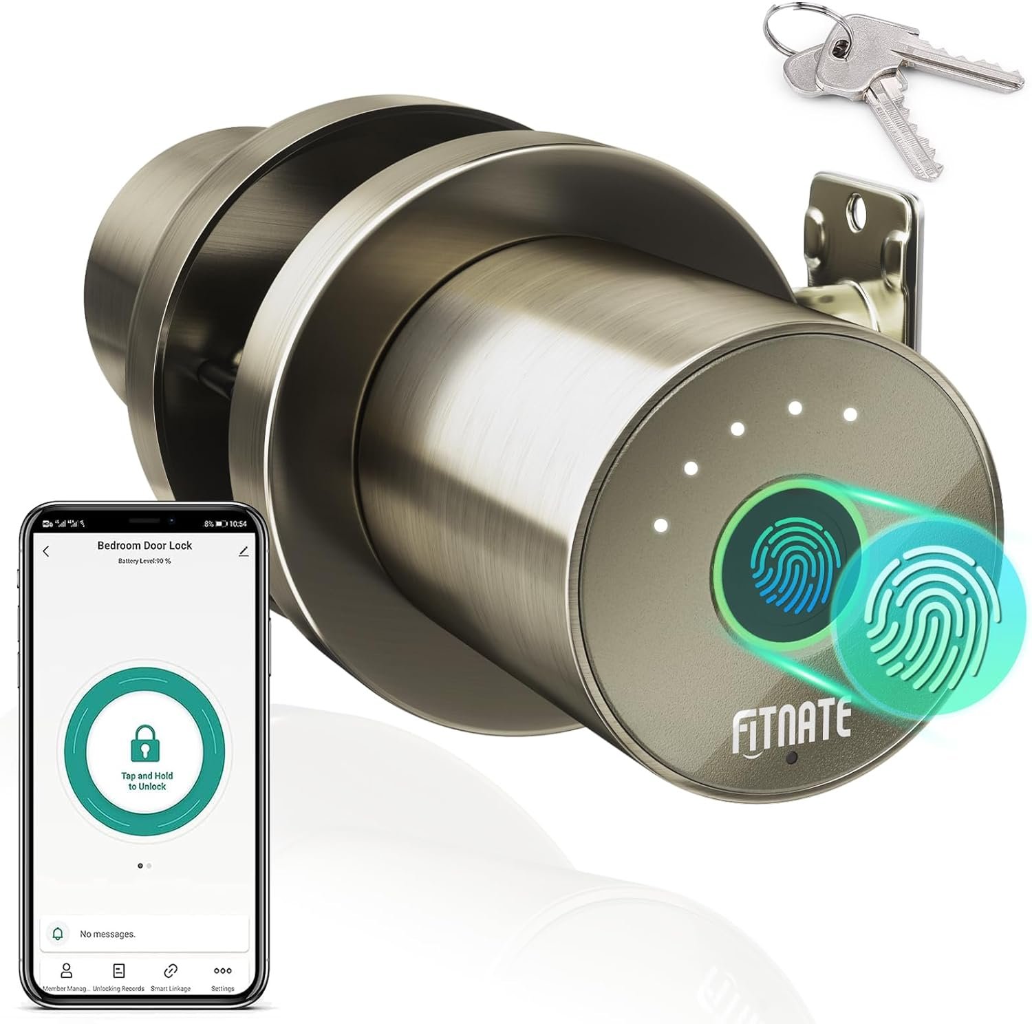 【APP Remote Unlock】FITNATE smart door knob can be operated by APP to unlock the door remotely without a key; you can also share access to the lock to friends, family and others for easy management.