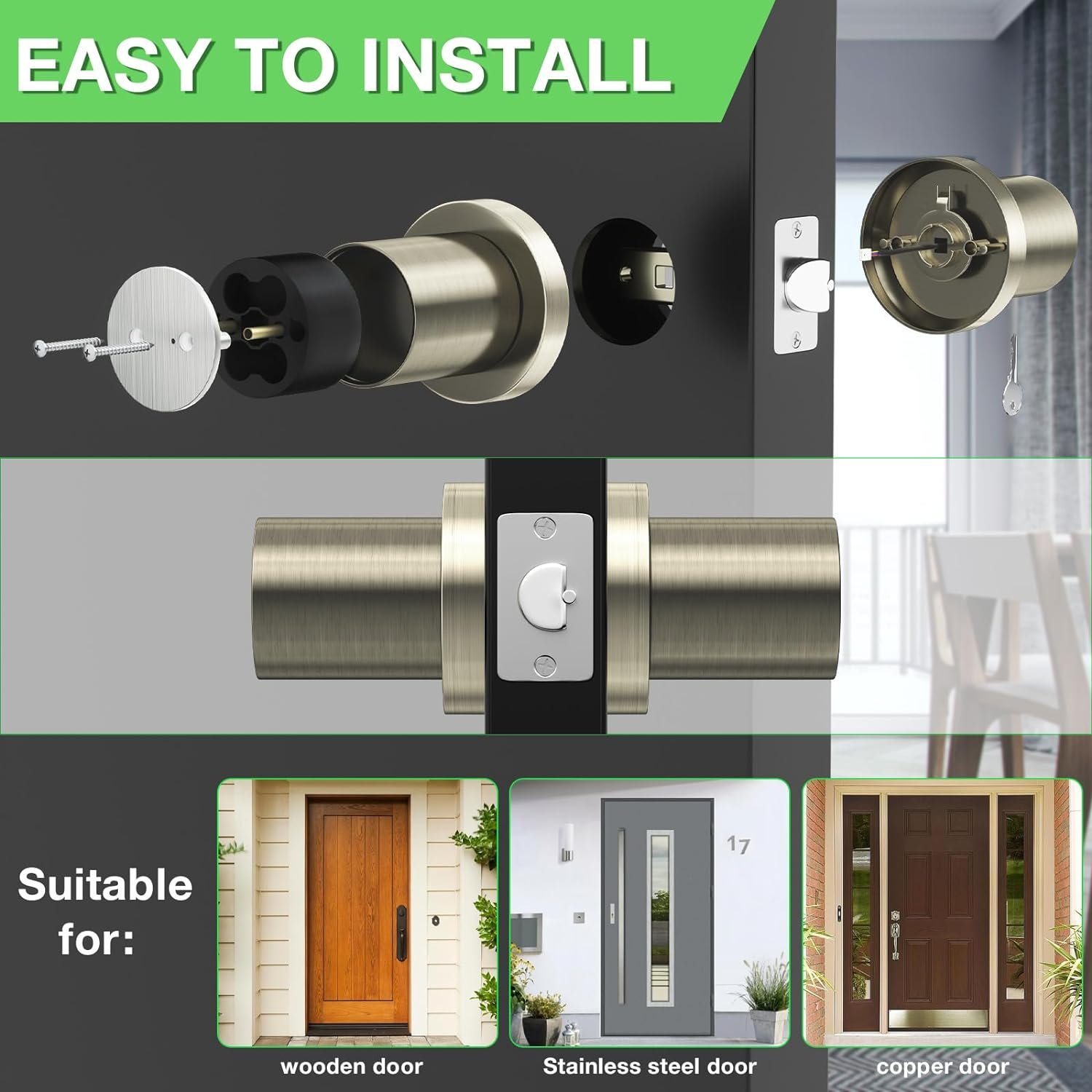【Easy to Install】FITNATE finger print door knob can be easily installed with a screwdriver in minutes. Note:4 AA batteries are required(batteries not included).