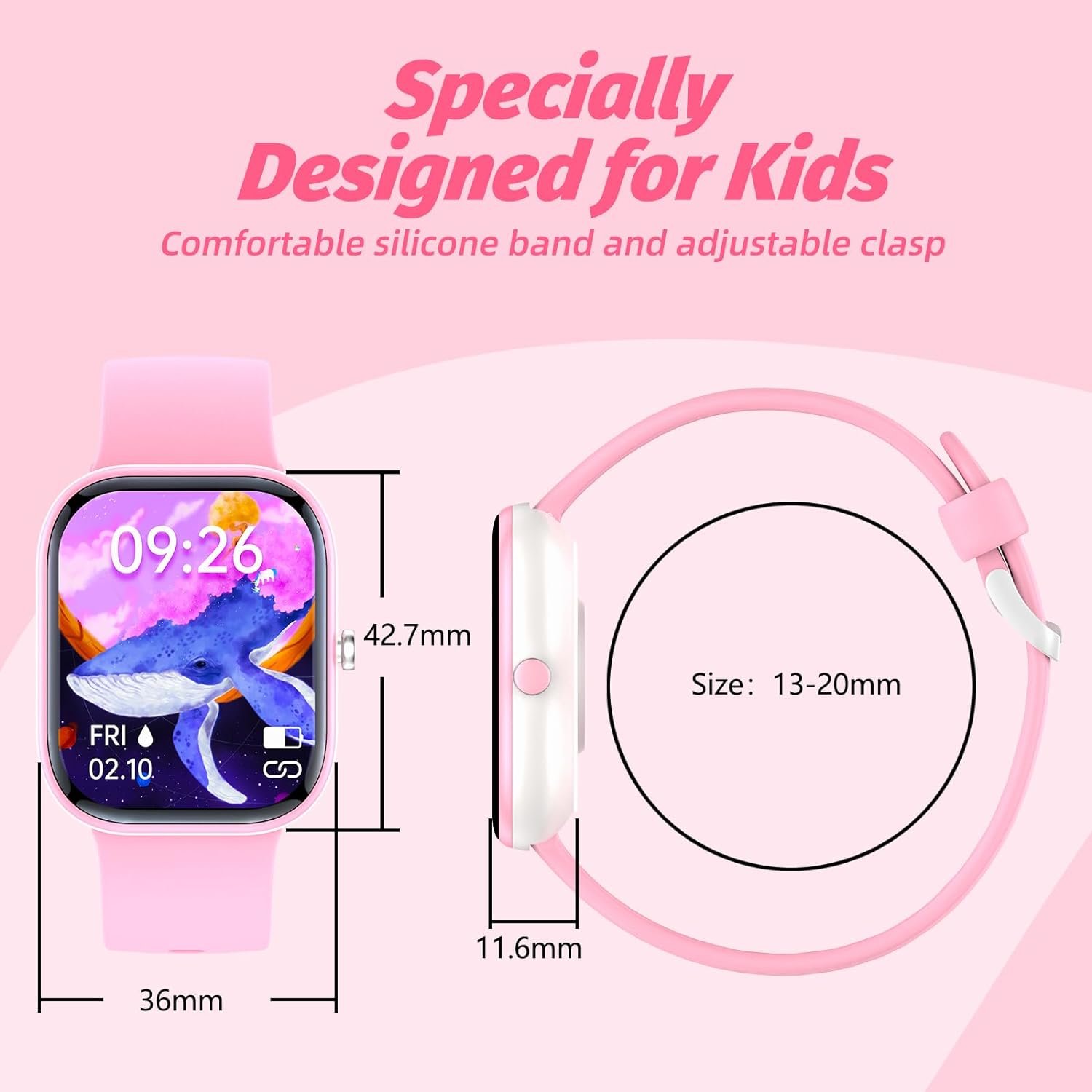 【THE BEST GIFT】The kids smart watches girls boys with fashionable and cute design, and 1.5 inch large color touch screen. They can also choose from 60+ Dials or DIY. The kids watches for girls boys will be a great Christmas gift, birthday gift, Easter gift.