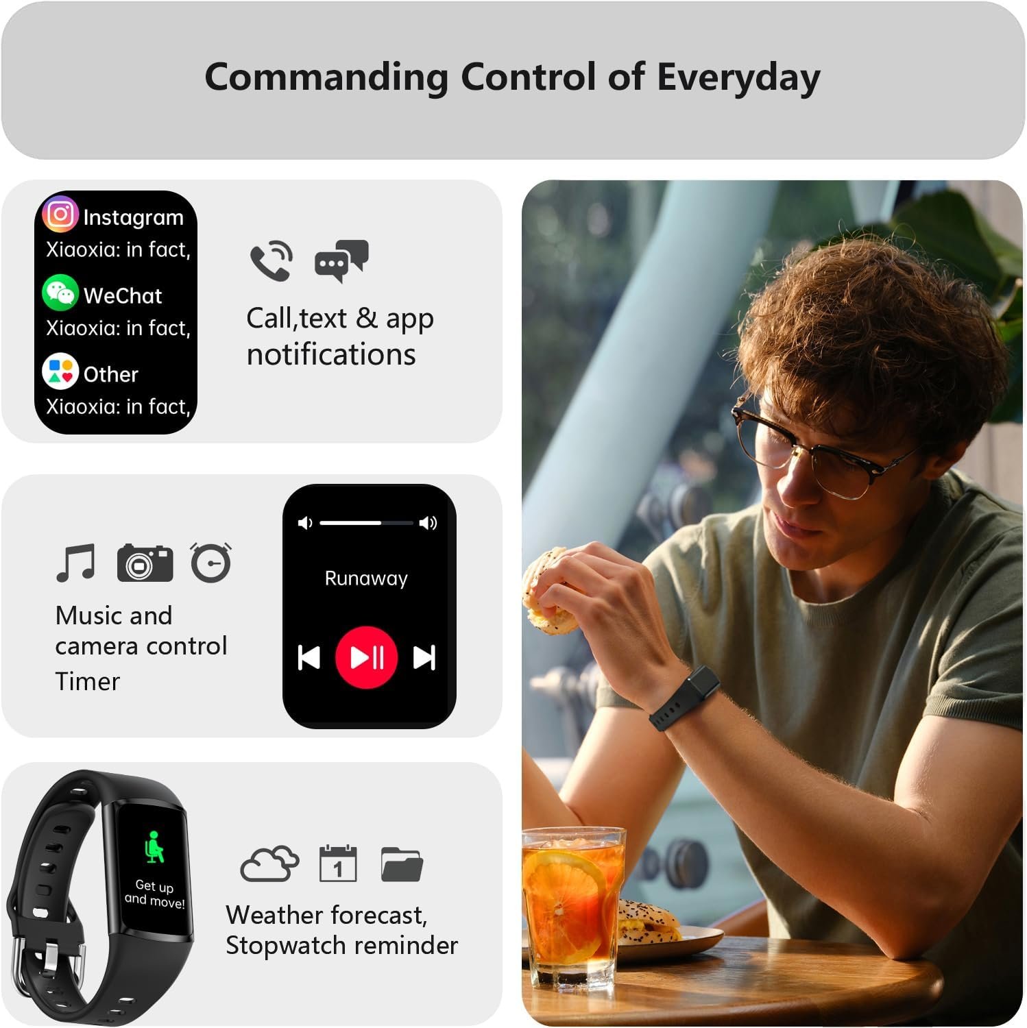 MORE PRACTICAL FUNCTIONS — Phone calls, texts, and all App message notifications are readily available. Real-time Weather, Alarm, Timer Stopwatch, Cycle Tracking, Camera, Sedentary Reminder, Music Control, Wrist Sensor Switch, Find Phone, DIY Watch Faces, and more to make your fitness journey even more convenient.