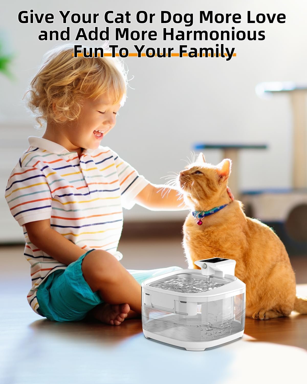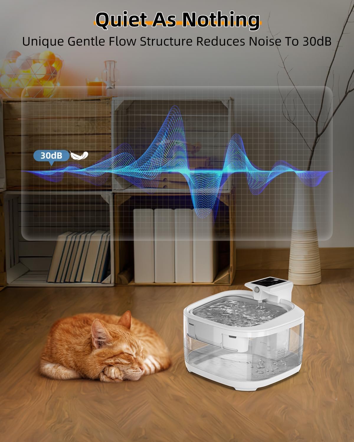 【Pur-fectly Silent】Fjzoys pet water dispenser features a whisper-quiet water pump at 30 decibels, Ensuring a tranquil environment, Even right next to your bed, you can sleep peacefully. Equipped with water level protection, Pump automatically stops working when the water level is low, Prolonging life span.