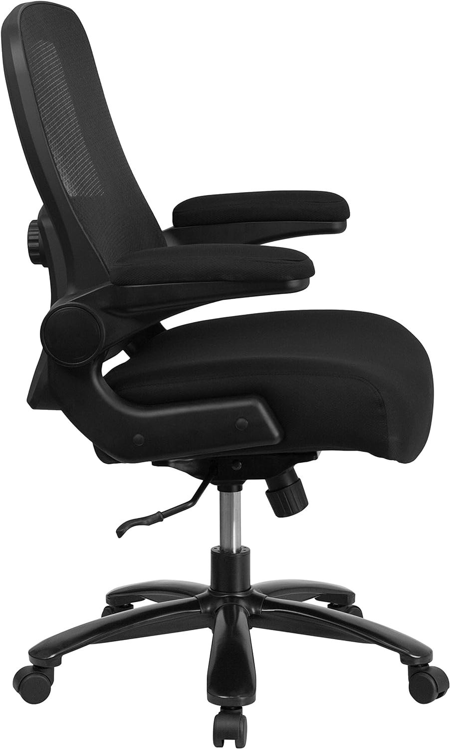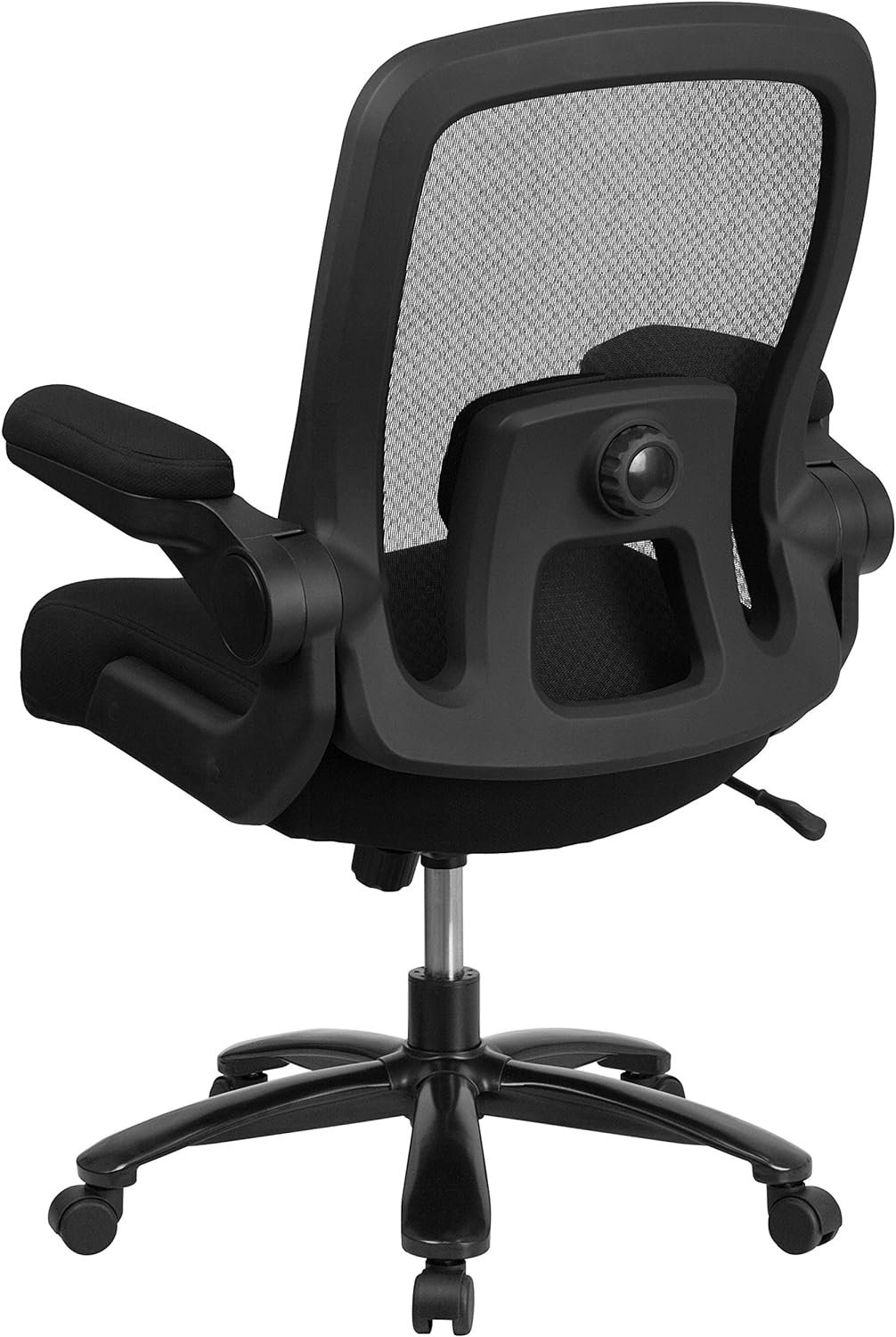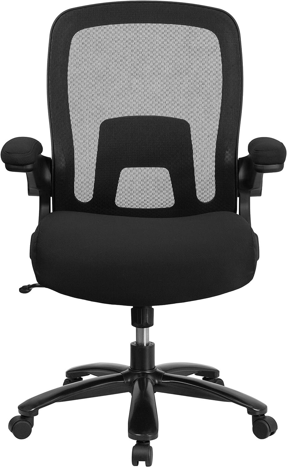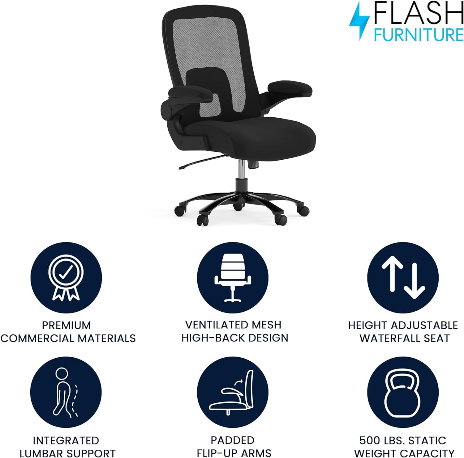 This black mesh office chair features a pneumatic adjustment lever that allows you to set the chair at your desired height. Contoured back and padded seat reduce back strain, giving you the support you need to work efficiently, while the office desk chair’s flip-up armrests relieve wrist and shoulder fatigue. For next-level comfort, the chair’s waterfall front seat is filled with five inches of thick, padded foam to provide firm support while promoting circulation.