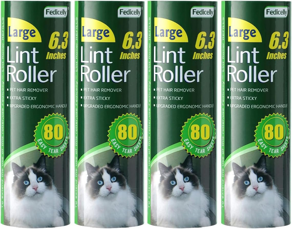MULTI-FUNCTION & MULTI-OCCASION USE: Fedicelly big lint rollers for clothes has a portable size and a lightweight body, The jumbo lint roller for clothes is not only perfect for your cleaning routine at home but also for when you’re on the go. You can easily put this cat lint remover in your bag ,car,office and use it anytime. Cat hair remover furniture is extremely easy and effective for all