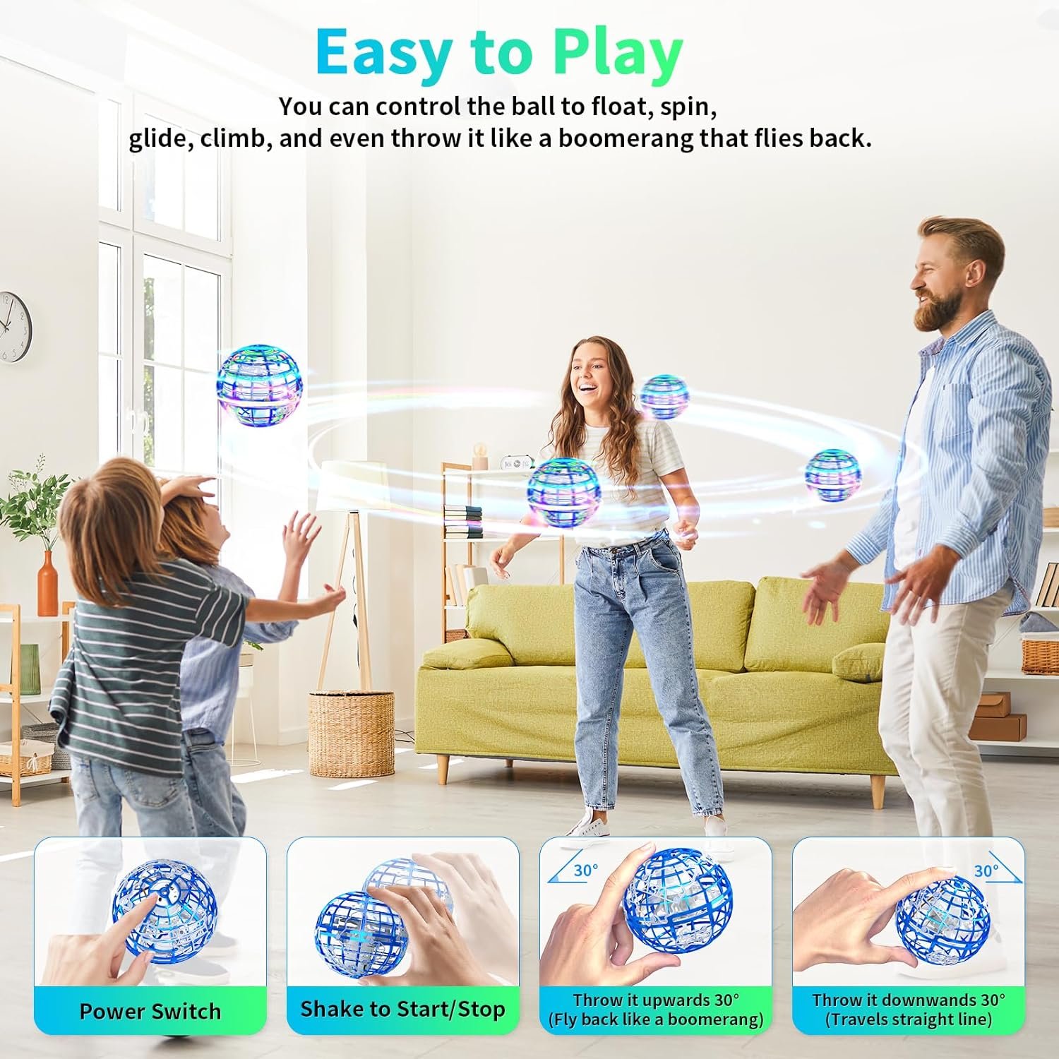 2024 New Flying Orb Ball: Our Flying Orb Ball is equipped with a built-in AI smart chip, offering multiple intelligent flight modes. You can control the ball to float, spin, glide, climb, and even throw it like a boomerang that flies back. It’s like magic, providing endless fun and skill. It’s lightweight and highly portable.