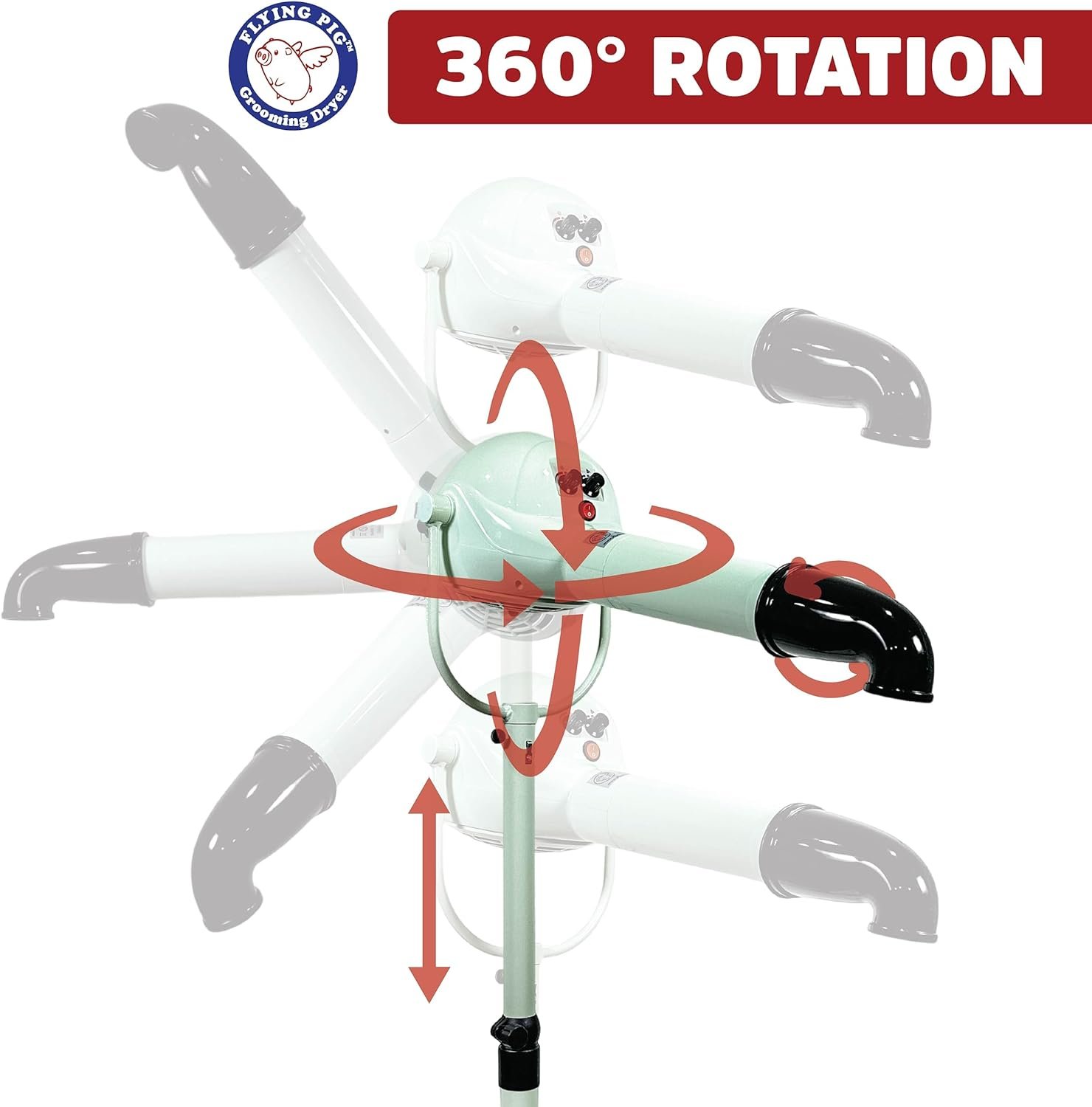 Adjustable height, rotating nozzle and 360 degree rotating head allow for maximize efficiency with minimal efforts. Its state of the art design provides a worry-free experience for groomers and pets alike