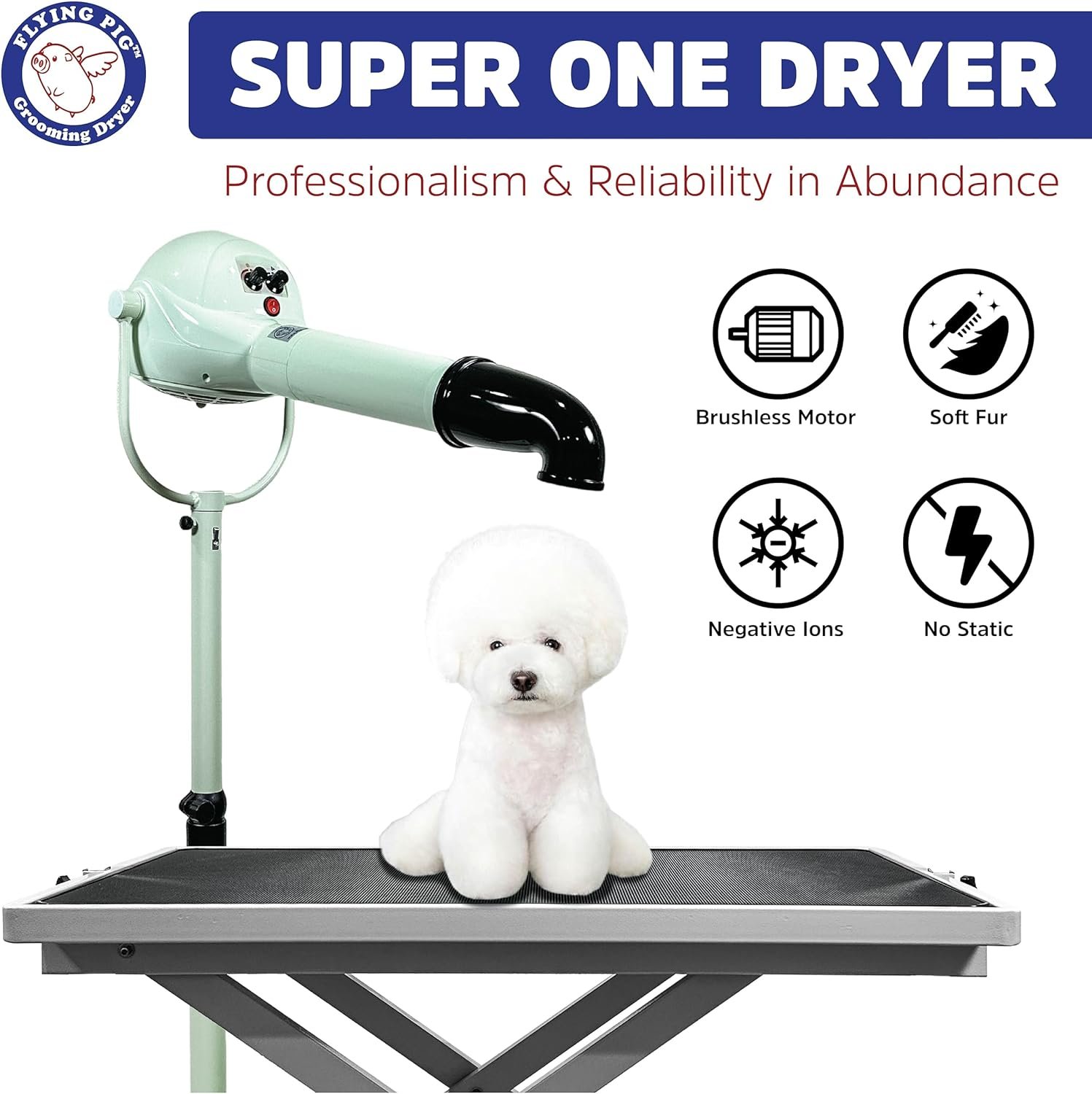 Dryer features quiet motor, variable speed, and variable heat knobs for complete control of the settings. Customizable setting will allow groomers to accommodate all coat types