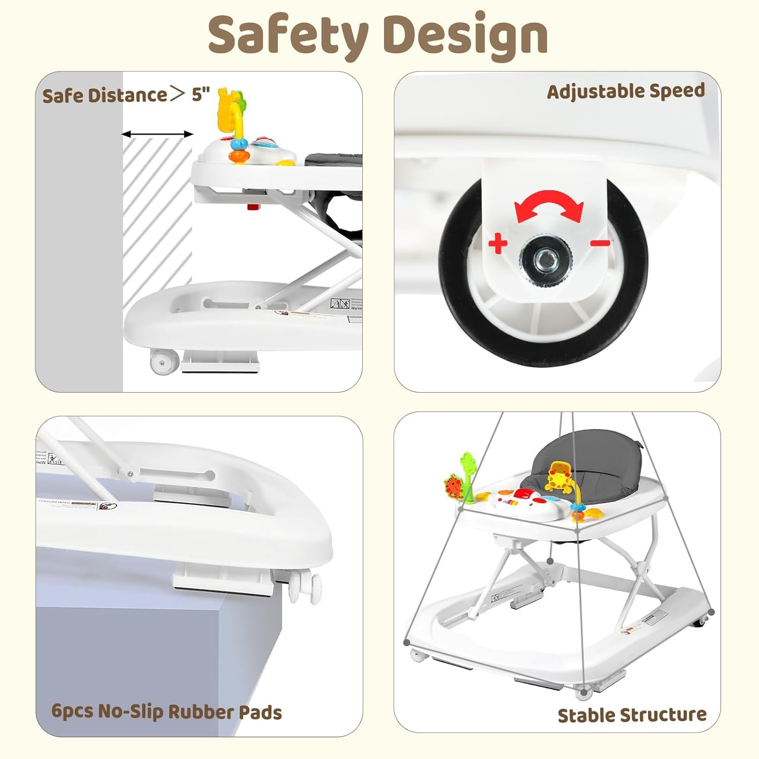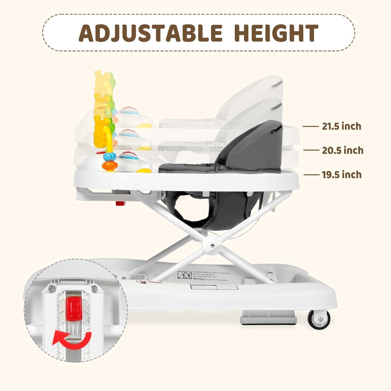 Foldable Baby Walker, 3 in 1 Baby Activity Center for Boys Girls, Toddler Walker w/Adjustable Height Speed, Learning-Seated & Walk-Behind, Infant Walker for 6-12 Months, Music Toys, Grey