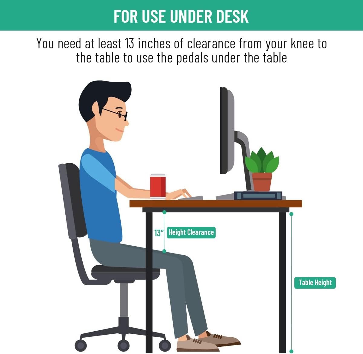 ADJUSTABLE RESISTANCE: The pedal movement is smooth and quiet, and the adjustable tension knob can control the resistance level and exercise intensity, even the elderly can pedal easily. The quiet and smooth pedaling motion allows you to use it in the office or at home without disturbing others. When using under a table, we recommend that the table be taller than 47 inches.