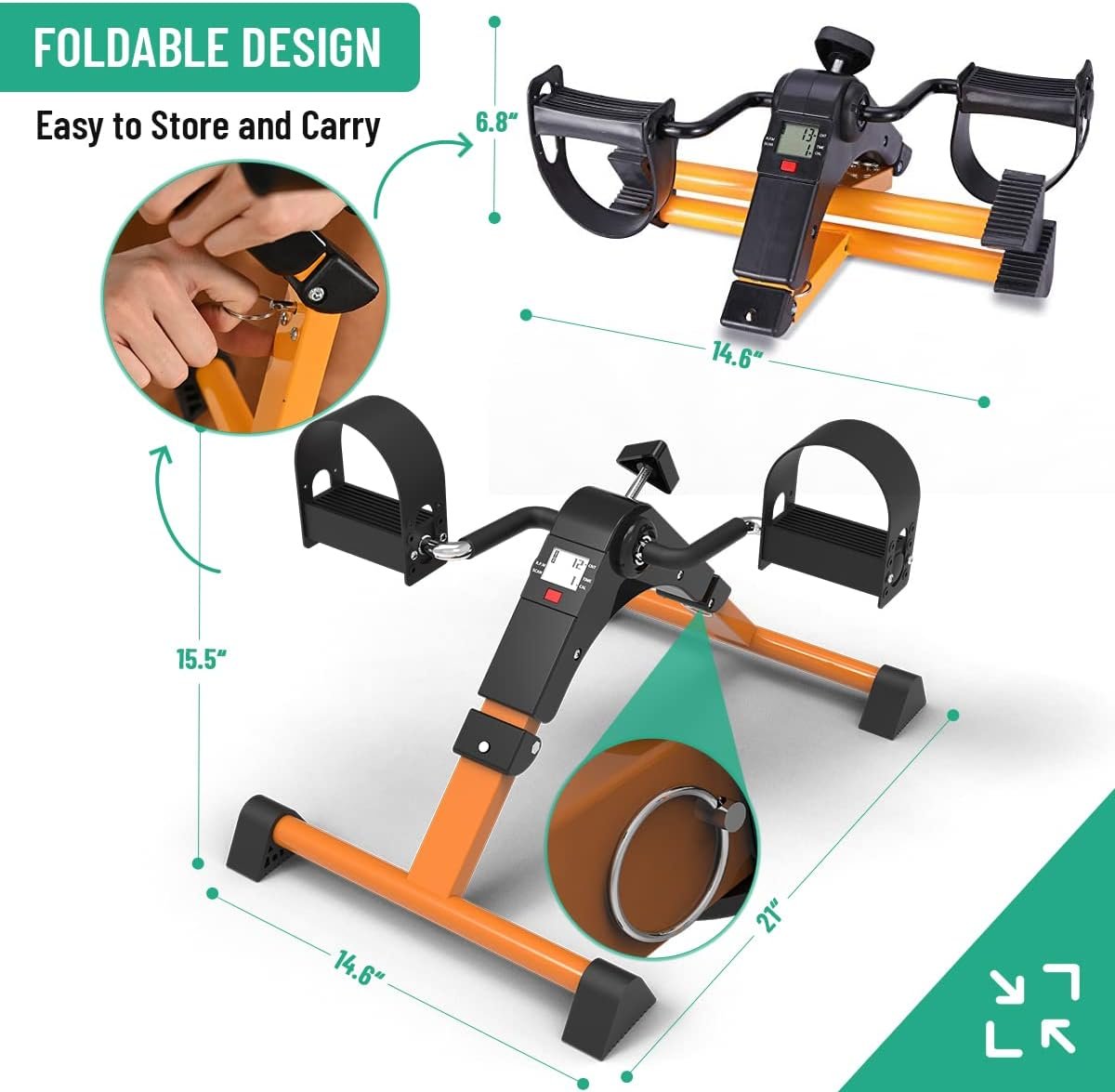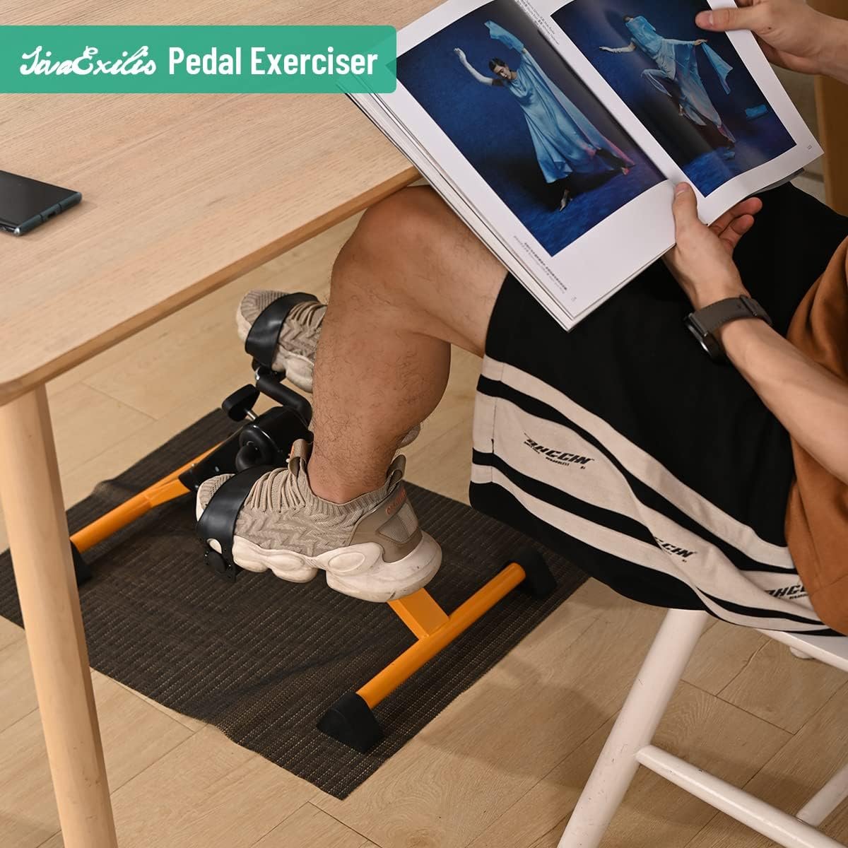 EASY STORE & PORTABLE: This Pedal Exerciser is foldable, small, light, easy to store and carry. Integrate your favorite activity with your workout routine when unfolded. Keep your bike under your desk while you work. Play online games, read a book, watch a movie or chat with friends while exercising. Exercise can be pleasurable. Note: Not for strenuous exercise.