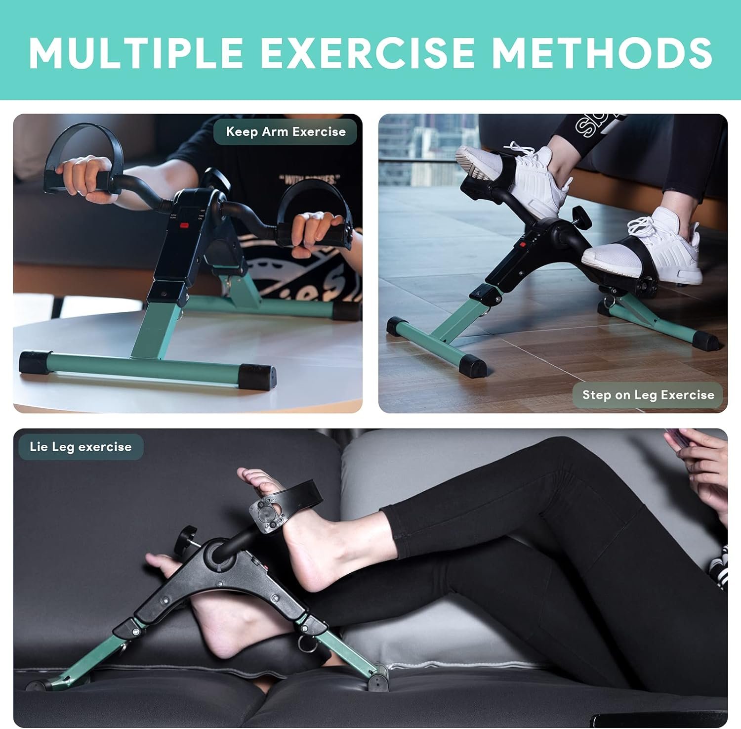 Folding Pedal Exerciser – Mini Exercise Bike Under Desk Bike Pedal Exerciser with LCD Display for Arms and Legs Workout, Portable Desk Bike Peddler Machine for Adults & Seniors