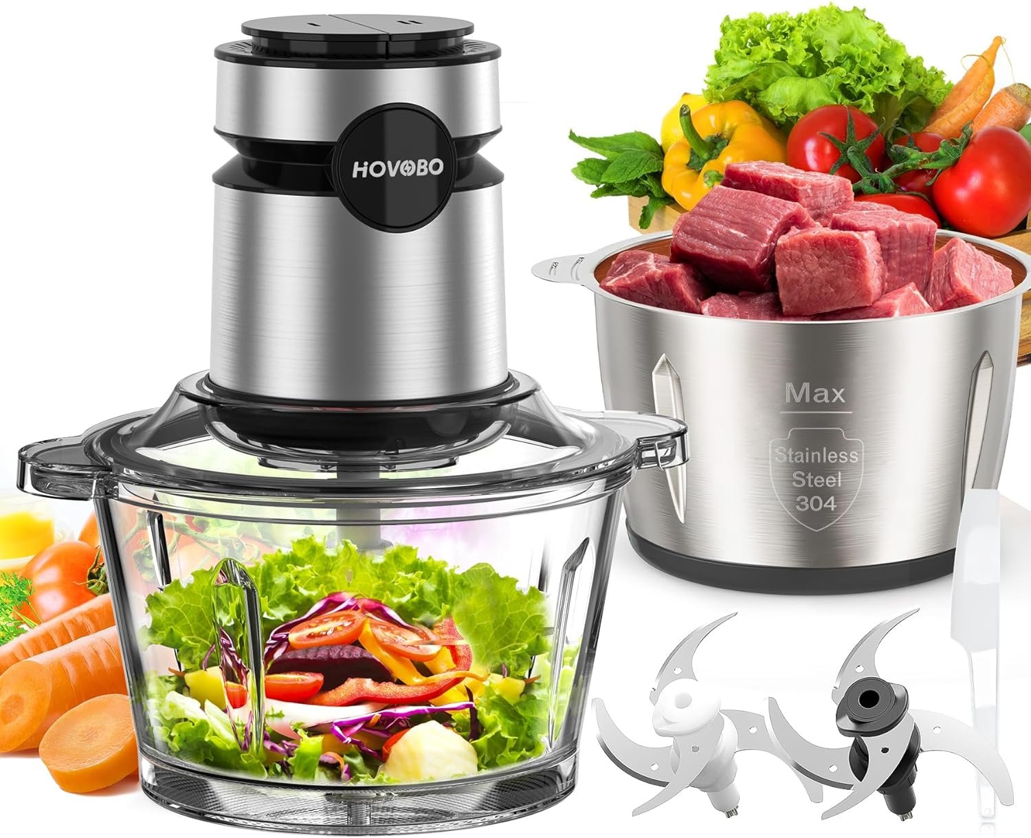 🌟【What You Get】This product comes with a stainless steel 8-cup bowl, 1 8-cup glass bowl, 2 blade sets, 2 non-slip mats and a food separator. It also includes a 24-month quality warranty and lifetime customer service to back you up.