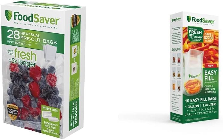 Keep food fresh with less mess with the FoodSaver easy fill Vacuum sealer Bags. Thanks to its upright design and wide, rigid opening, you can easily load food into your bags with less effort and less spills! It offers the same protection from freezer burn, spoilage, and nutrient loss as traditional FoodSaver Vacuum sealer Bags, with a whole lot more convenience.