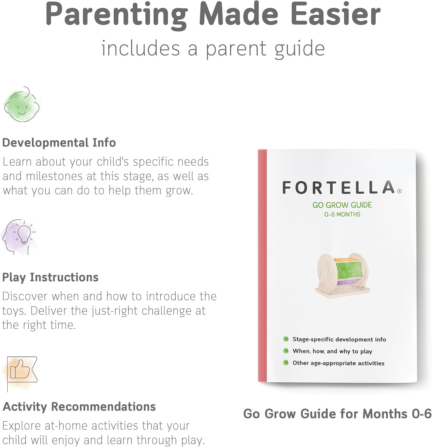 Go Grow Guide: Gain valuable insights with our in-depth parent guide. Discover play instructions, educational purposes, and recommendations for at-home activities that align with your baby’s developmental milestones.