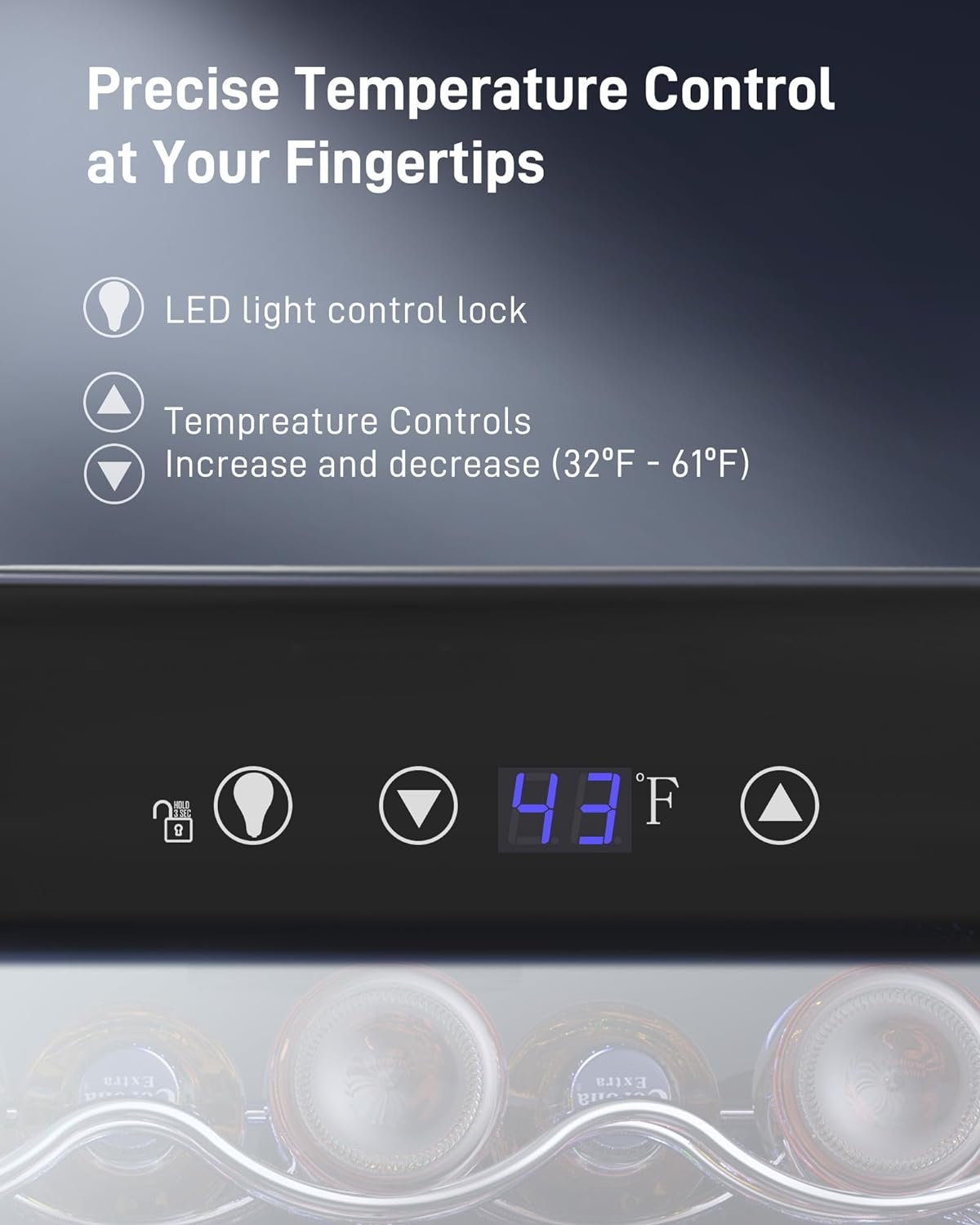 Precision Control – Touch panel electronic buttons with clear temperature display allows for meticulous adjustment between 37°F and 61°F, this beverage fridge perfect for achieving optimal beverage conditions.