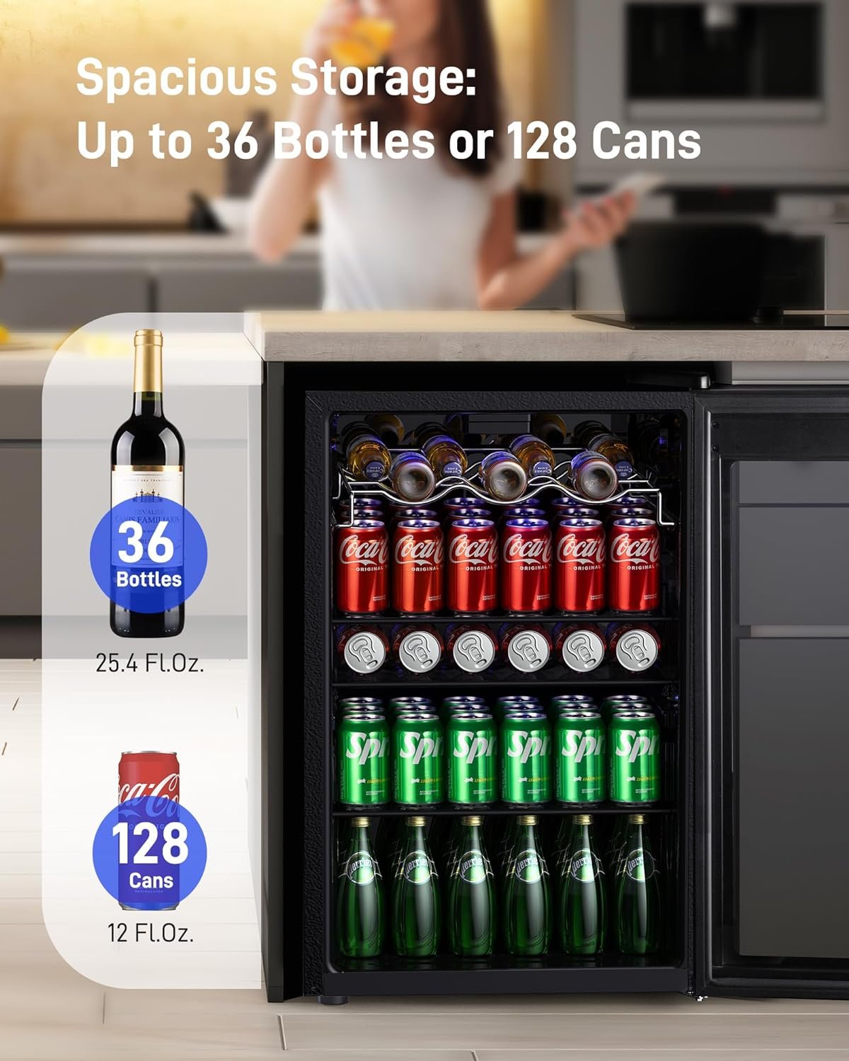 Spacious Capacity – Countertop beverage cooler with a generous 4.4 cu.ft storage, this freestanding drink fridge can conveniently hold up to 36 bottles or 180 cans, making it suitable for parties, offices, or student dormitories.