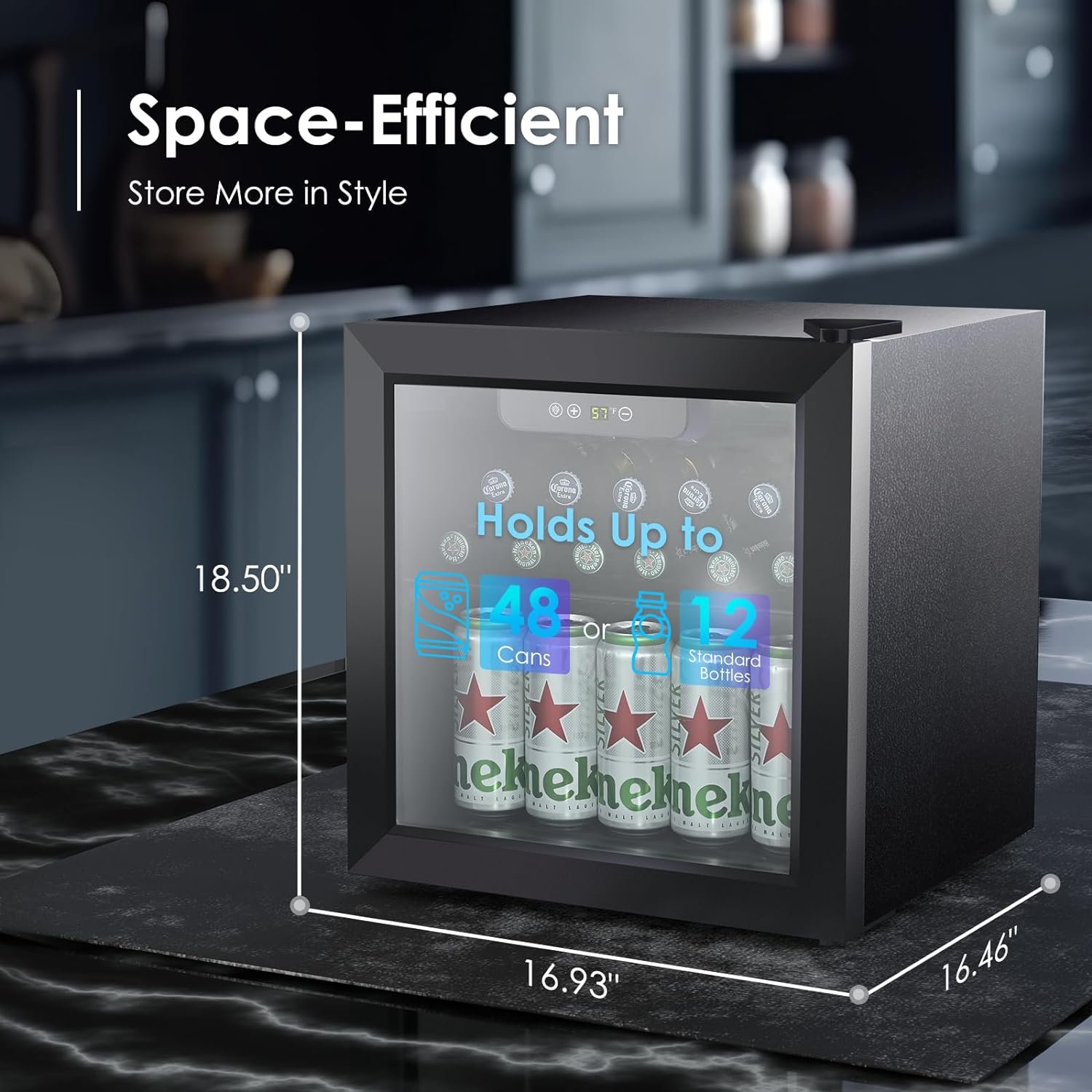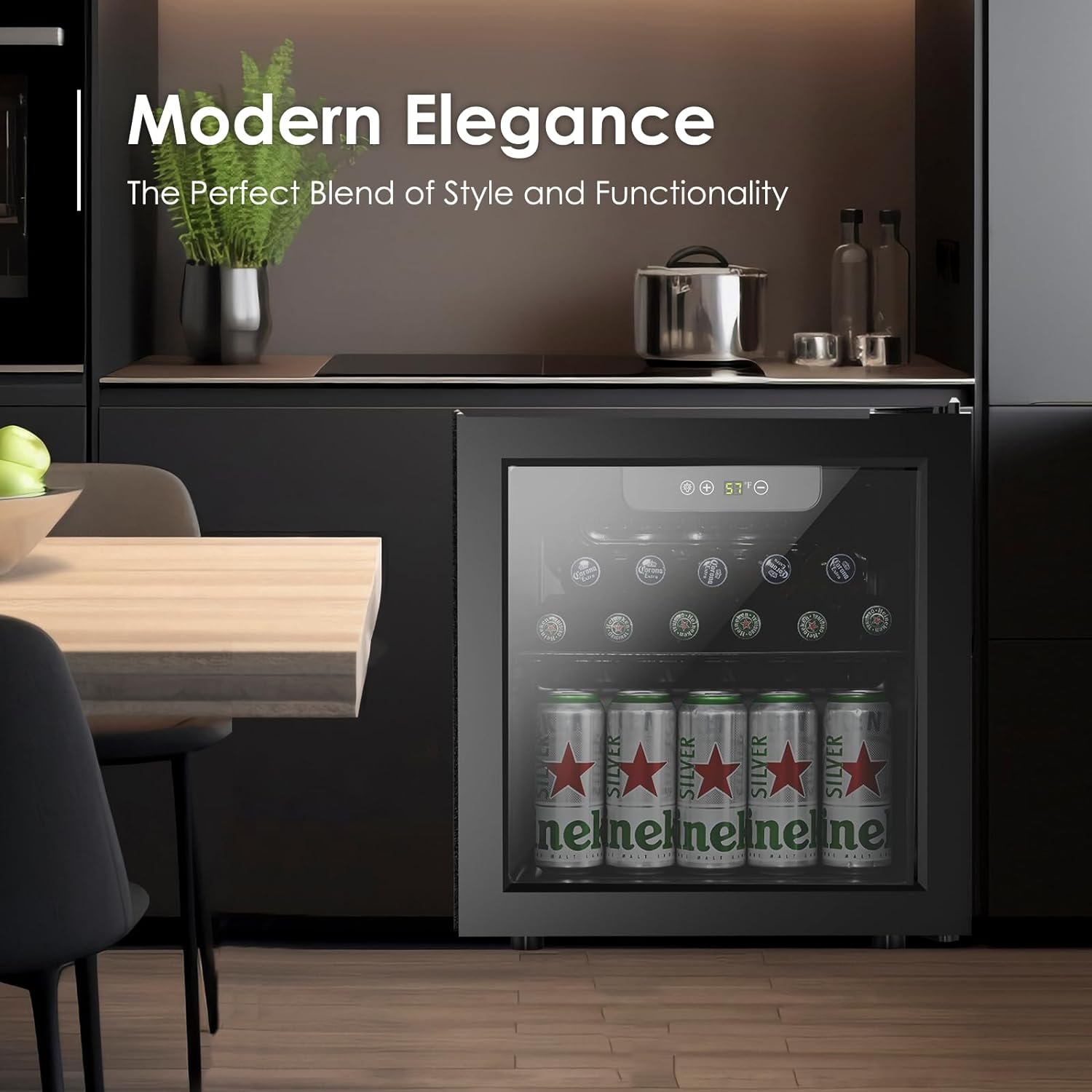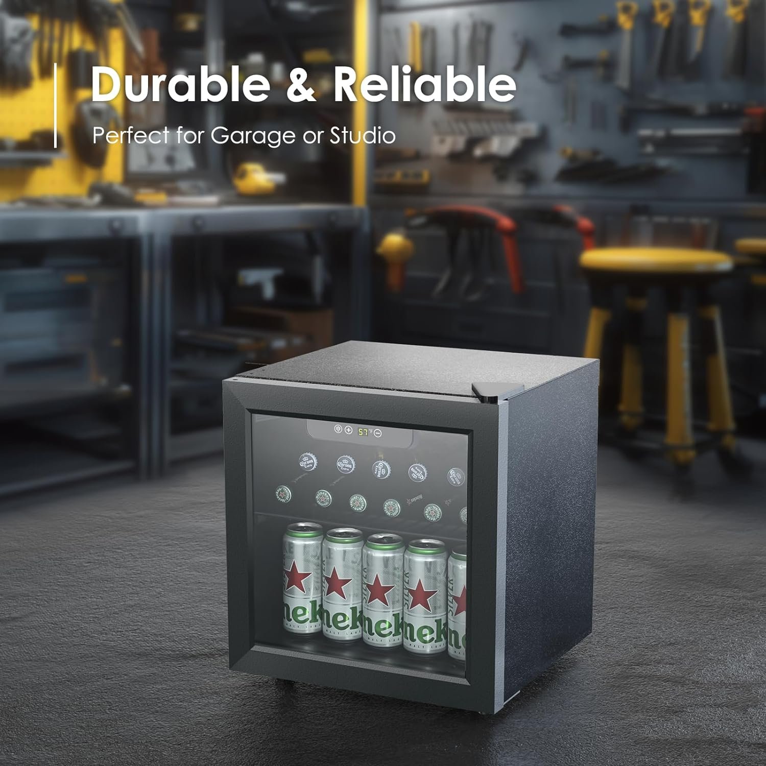 Compact Design – This modern and stylish 1.3 Cu.Ft. beer fridge with glass door fits seamlessly into any setting. The beverage cooler’s aesthetic appeal makes it a versatile addition to student dormitories, home game rooms, or even high-end office spaces, where appearance is a key consideration.