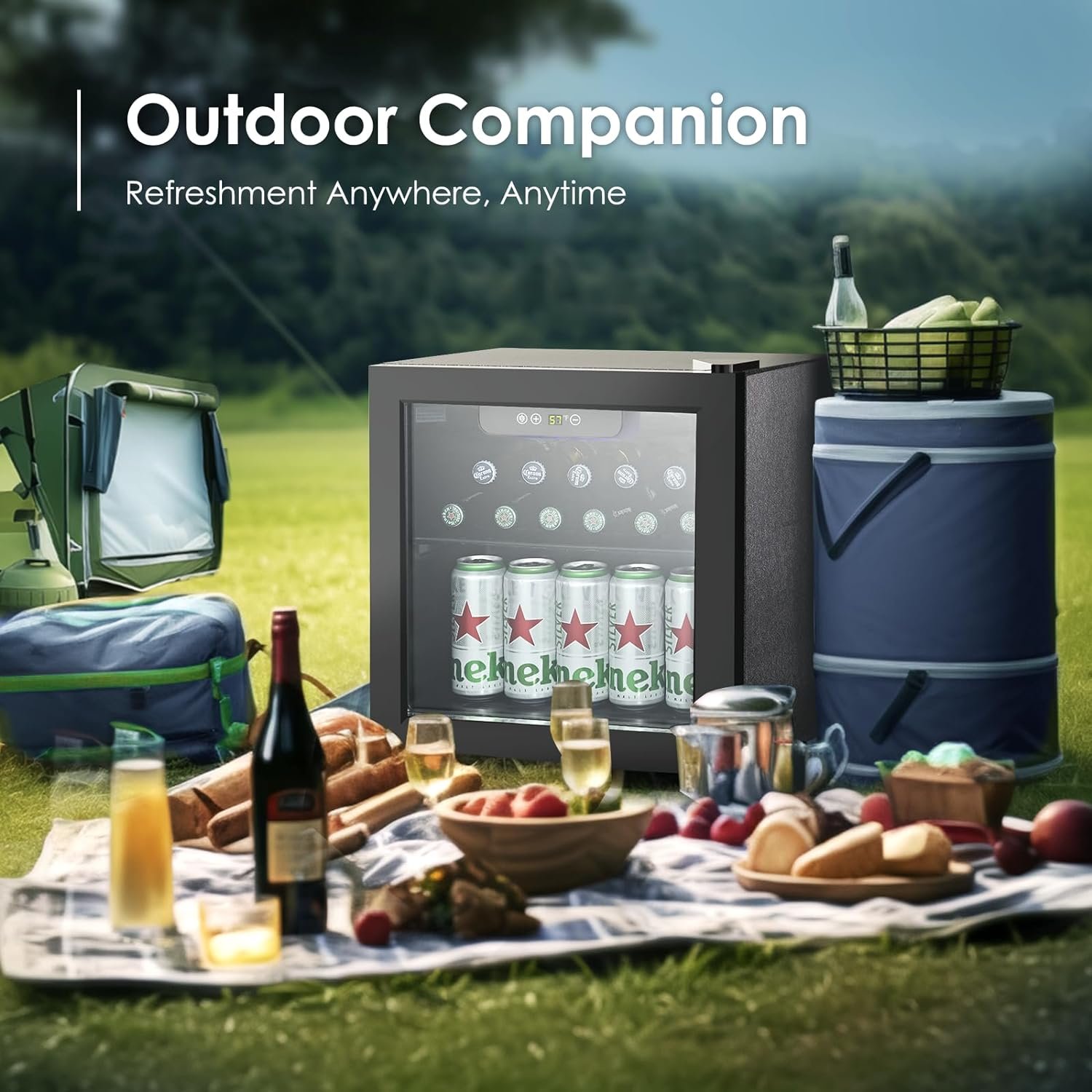 Portability – Designed with a lightweight construction (16.46″D x 16.93″W x 18.5″H), this mini fridge glass door is easy to transport and set up. This mini fridge for drinks is ideal for outdoor activities such as camping or tailgating, offering a convenient way to keep your beverages chilled and accessible throughout your event.