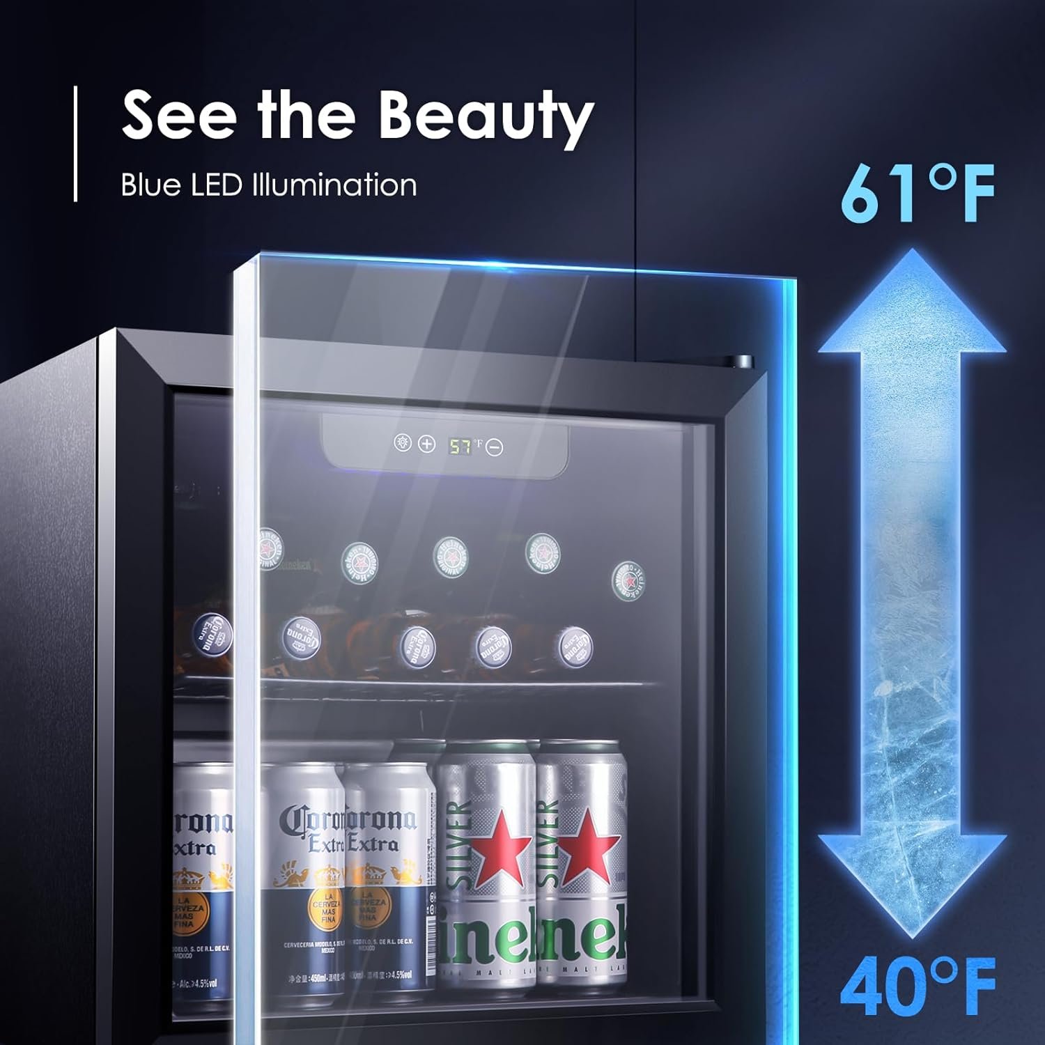 Intuitive Control Panel – Featuring a user-friendly control panel, this beer fridge allows you to easily adjust and maintain the temperature between 40°F and 61°F. This simplicity eliminates the need for complicated settings. Our wine cooler refrigerator is ideal for elder family members or technologically-challenged individuals.