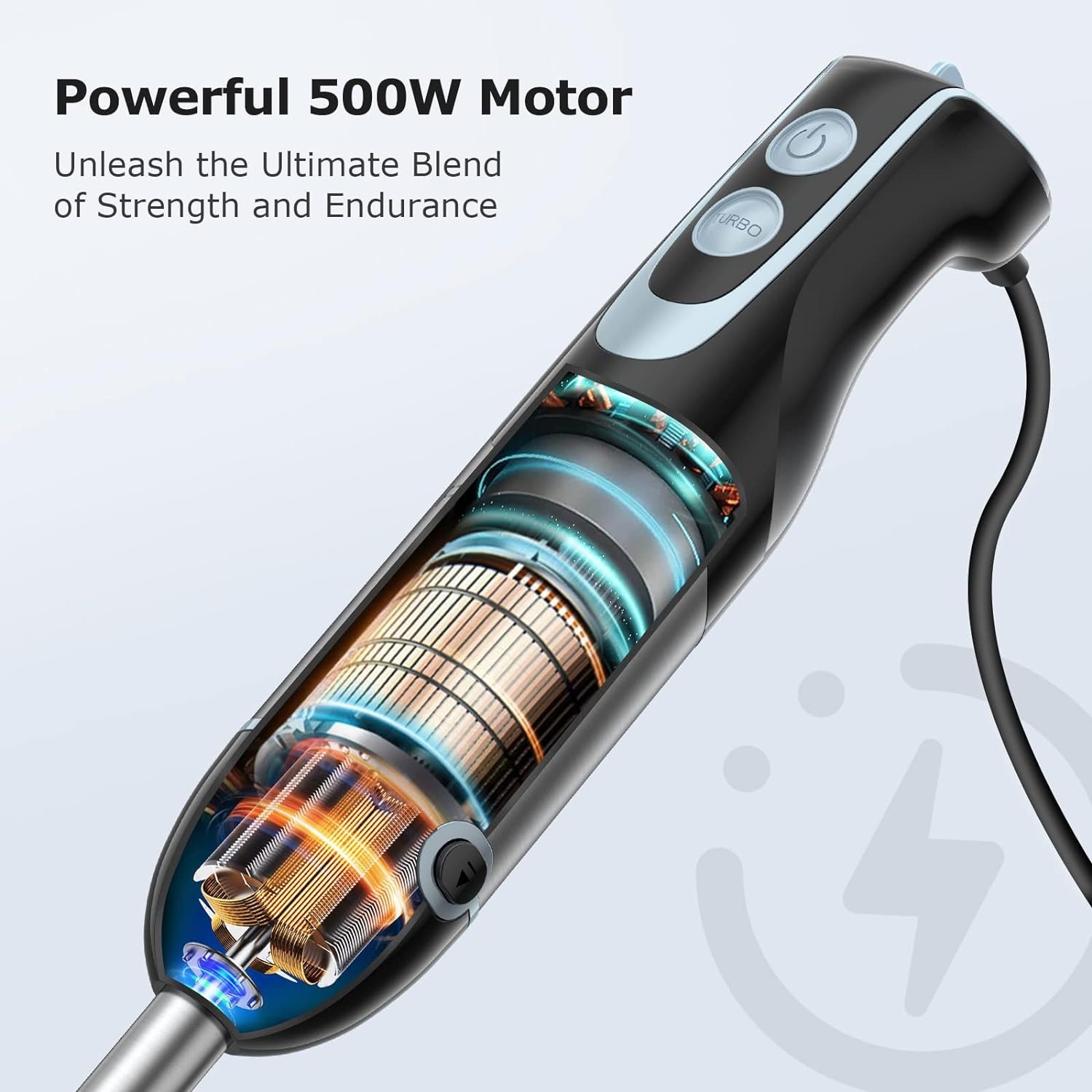 500W Powerful Motor:Efficient, Long-continuous Blending, Immersion Blender Gets the Job Done Fast!