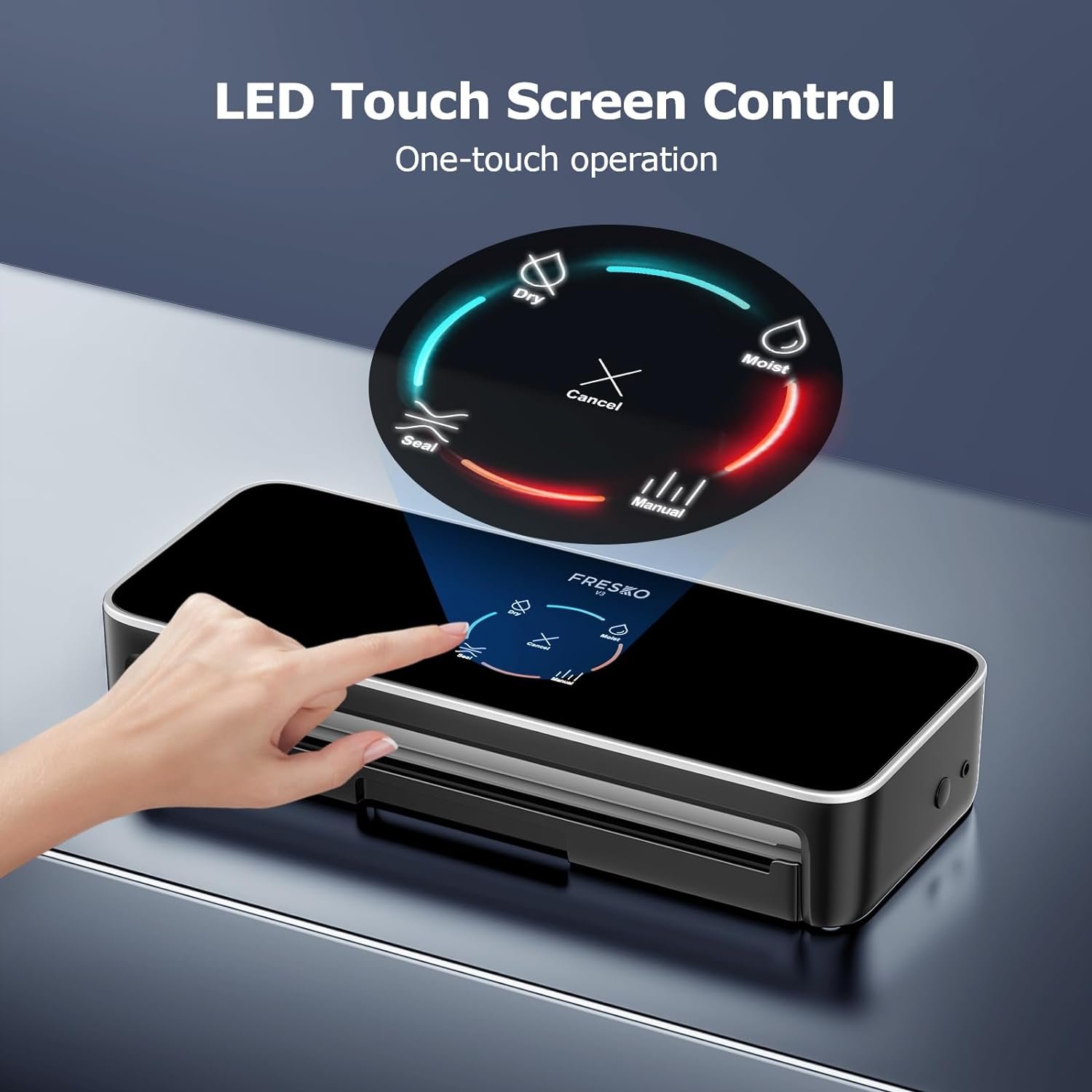 【Multifunction】FRESKO vacuum sealer includes 6 selectable modes (Dry/Moist/Seal/Manual/Cancel/External vacuum) to meet your different food preservation demands, Dry/Moist for normal dry food or the food with moisture, Manual for soft or fragile food, External for Wine or the food storaged in Vacuum Jars.