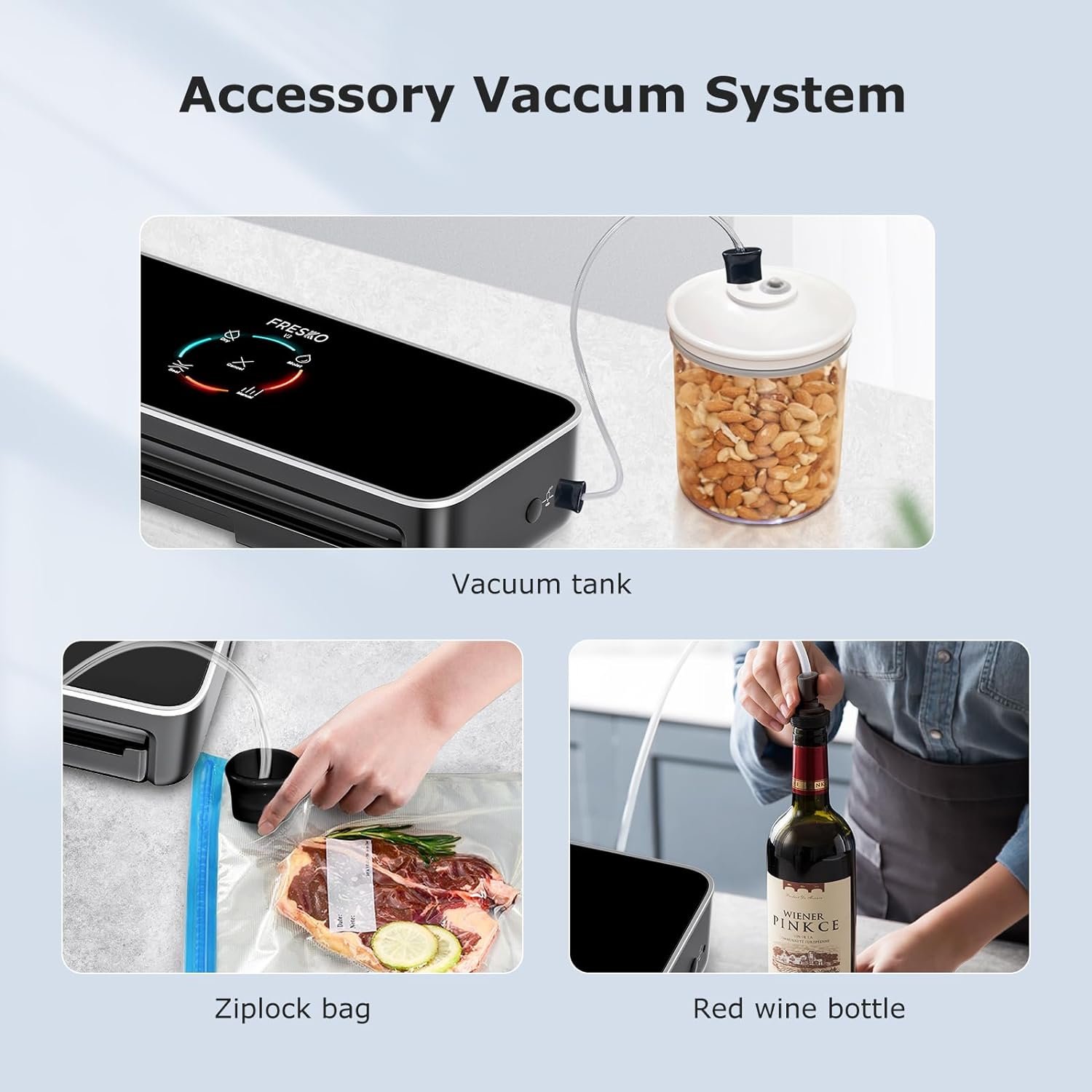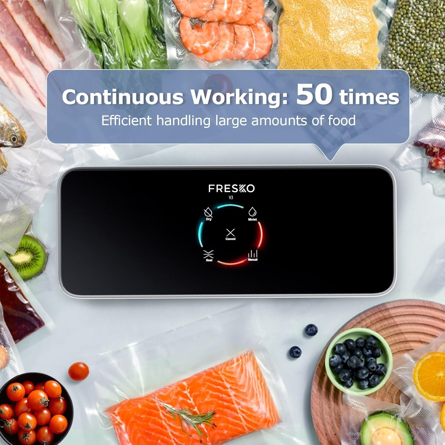 【Continuous Operation】This advanced food vacuum sealer can vacuum and seal more than 50 times continuously for large amounts of food storage. Consistent performance with FRESKO vacuum bags ensures a tight seal and optimal preservation of food freshness.
