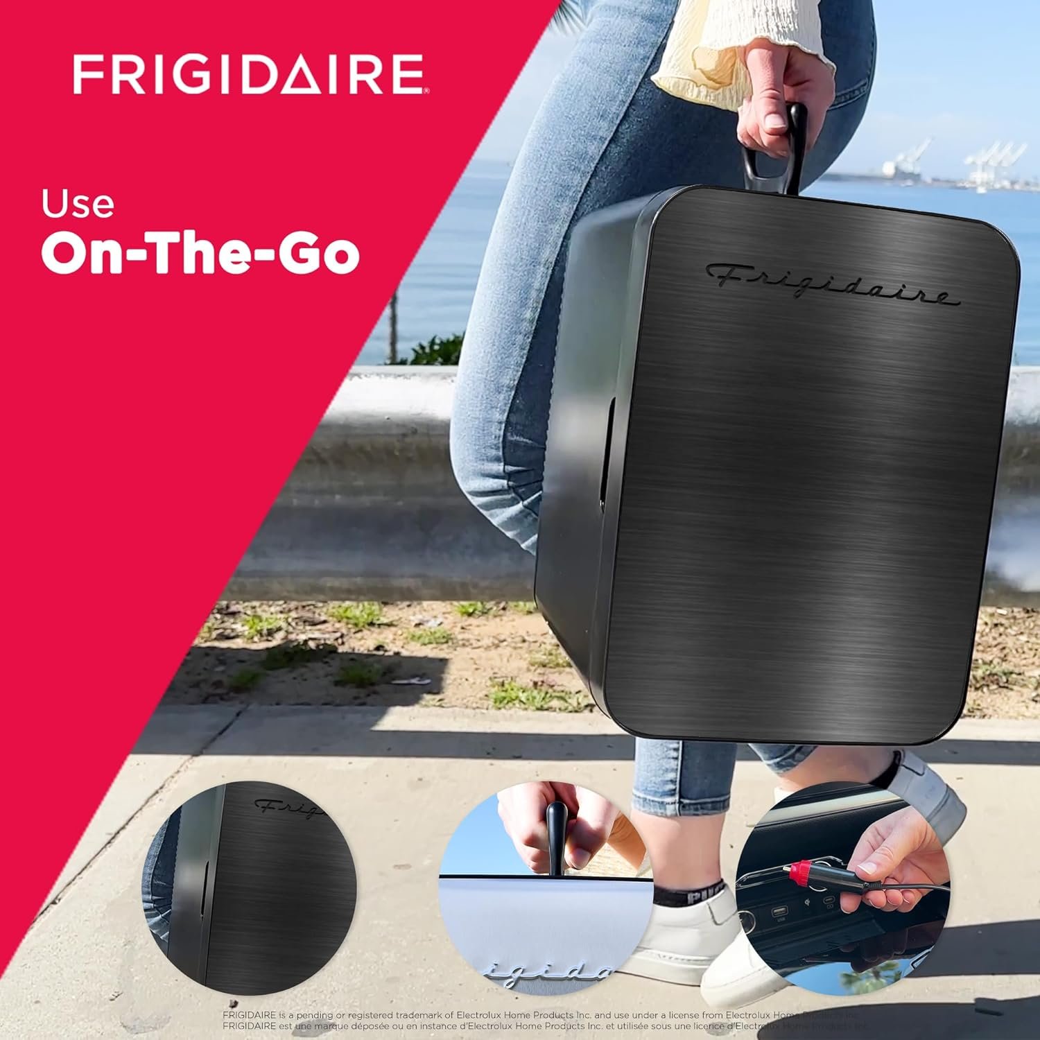MINI FRIDGE, MAXIMUM CHILL. The Portable Personal Fridge keeps your food and drinks the perfect temperature while at home and on the go. The ultimate versatile cooler, this mini fridge starts cooling with just the flip of a switch. Cools up to 32°F below ambient temperature, and warms up to 140°F at an ambient temperature of 75°F. Compact space saving design and lightweight features make it easy to take with you anywhere, yet can still fit your needs; 10 Liter capacity chills 15 12 oz. cans, while a removable shelf makes it easy to store milk, juice, yogurt, bottles, smoothies, cheese, fruit, coffee, soup, and many more home cooked meals or beverages. Perfect for personal spaces, bedrooms, offices, hotels, boats, carpools, soccer games, sporting events, backyard BBQ, pool parties and more! Conveniently plugs into standard home outlets and 12V car chargers so you can take with you anywhere you go. 100% Freon-Free and and cETL approved with advanced safety technology for long-lasting durability.