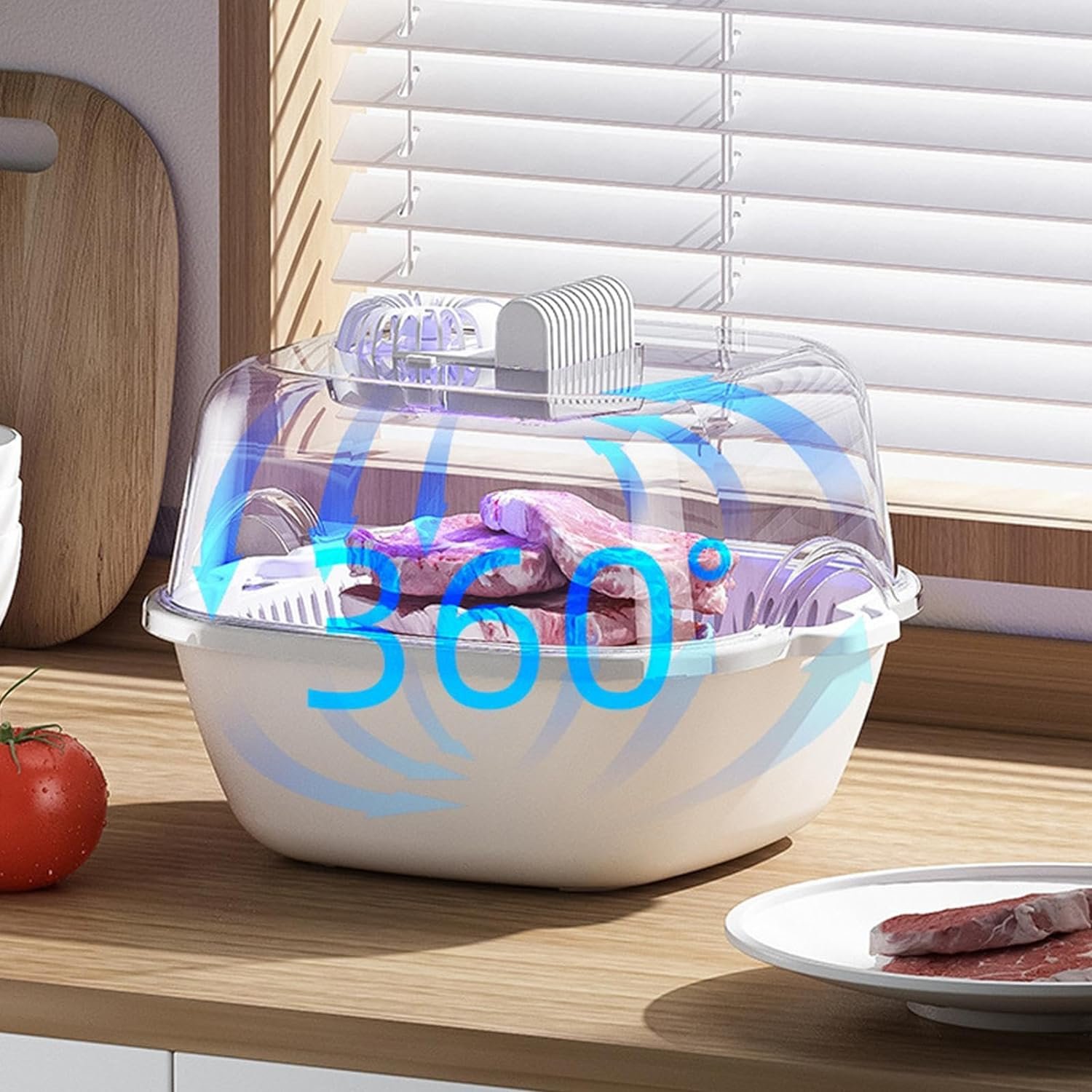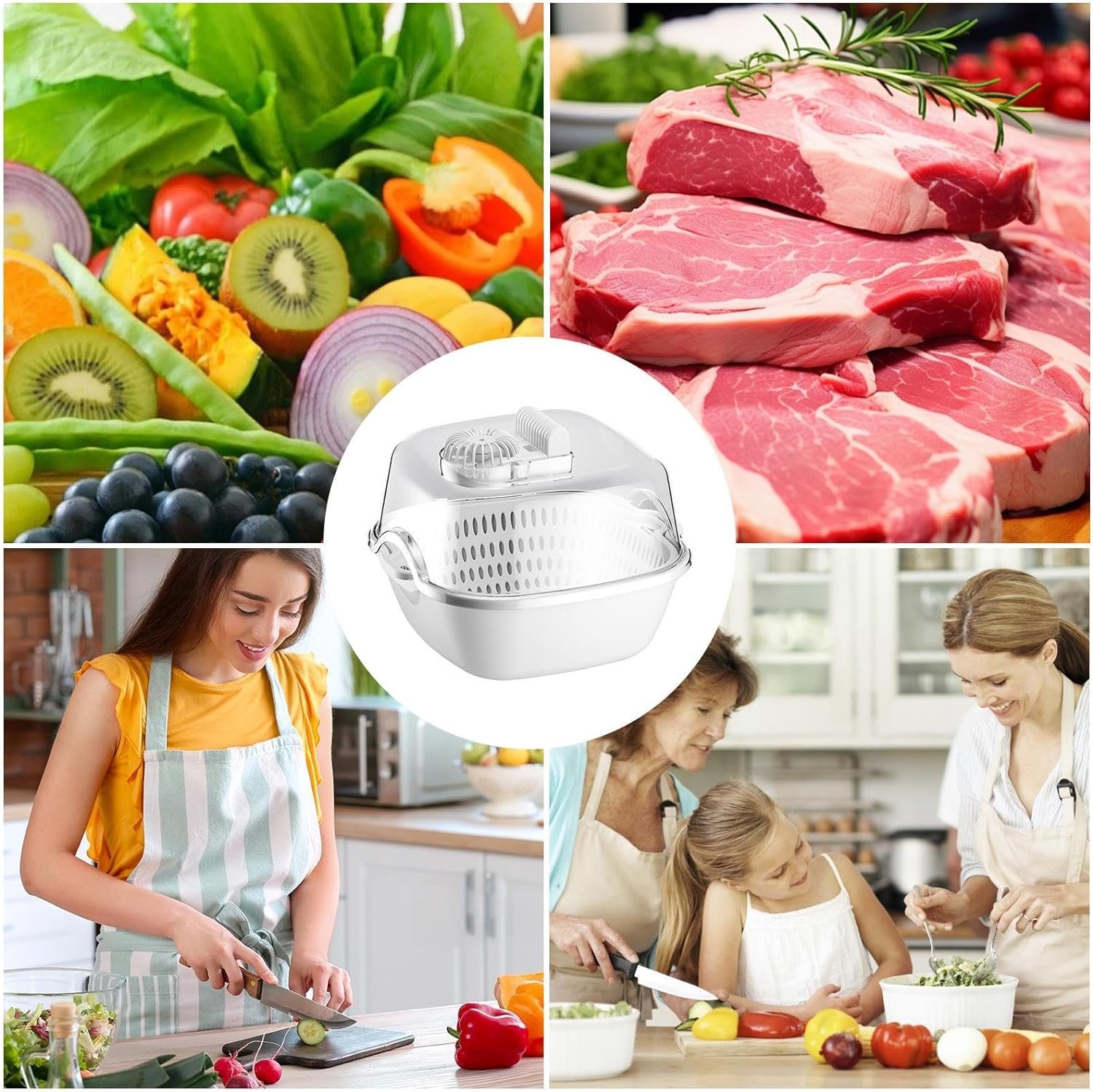 Multi-Purpose Tool: With its 360-degree circulation cooling, our Meat Defrosting Machine serves as a versatile kitchen companion. Use it as a fruit washing basket, dish dryer, or drain basket, catering to your daily kitchen needs with ease.