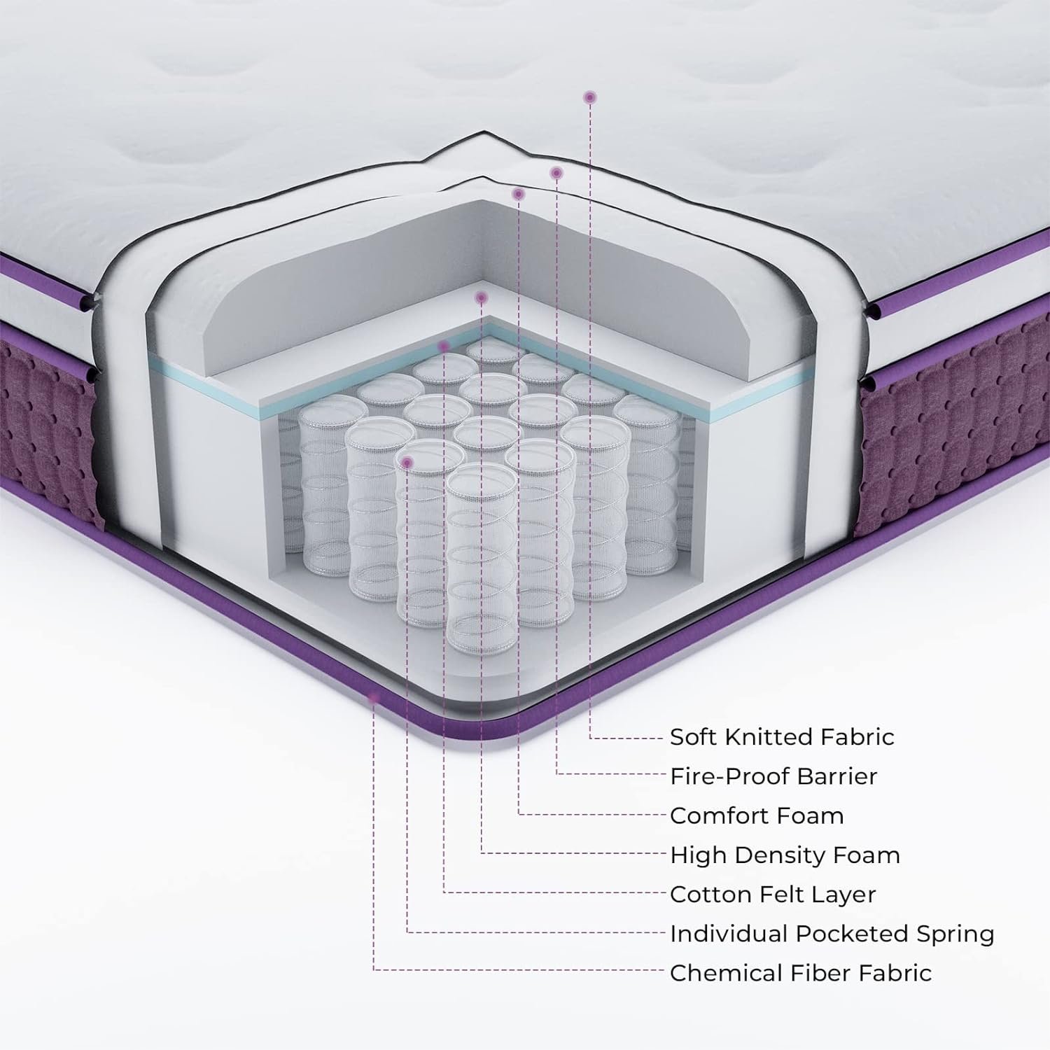 Breathable and Hassle-Free Sleep: The 10 inch full mattress is made of first-class thermal material, which is comfortable and breathable. The design of the individually springs full size mattress not only offer comfortable support, also allows air to flow smoothly, so that you can keep your body comfortable and dry during sleep. Effectively help relieving body pressure and promoting a deep sleep.
