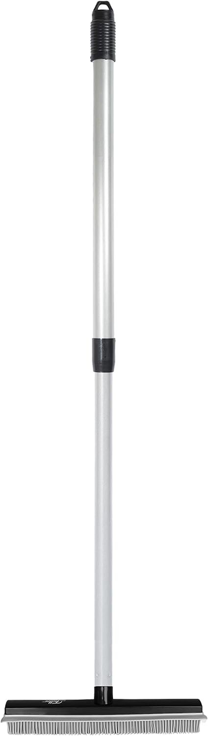 GET RID OF HAIR ON CARPETS: Our Fuller Brush Rubber Broom efficiently removes hair, lint, fuzz, dust bunnies and dirt particles from carpets, floors, ceramic tile, stairs, upholstery and more. Handle adjusts to any length from 29 to 52 inches for the desired height.