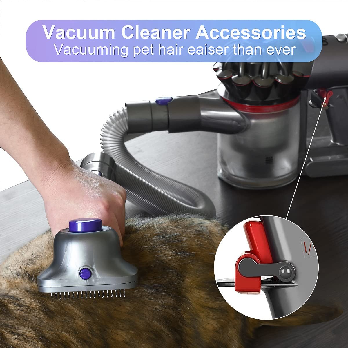Variety of Accessories – This vacuum groom brush tool is equipped with an extension hose and trigger lock, seemlessly connecting to your Dyson vacuum cleaner and transforming it into a high-performance pet vacuum grooming machine.