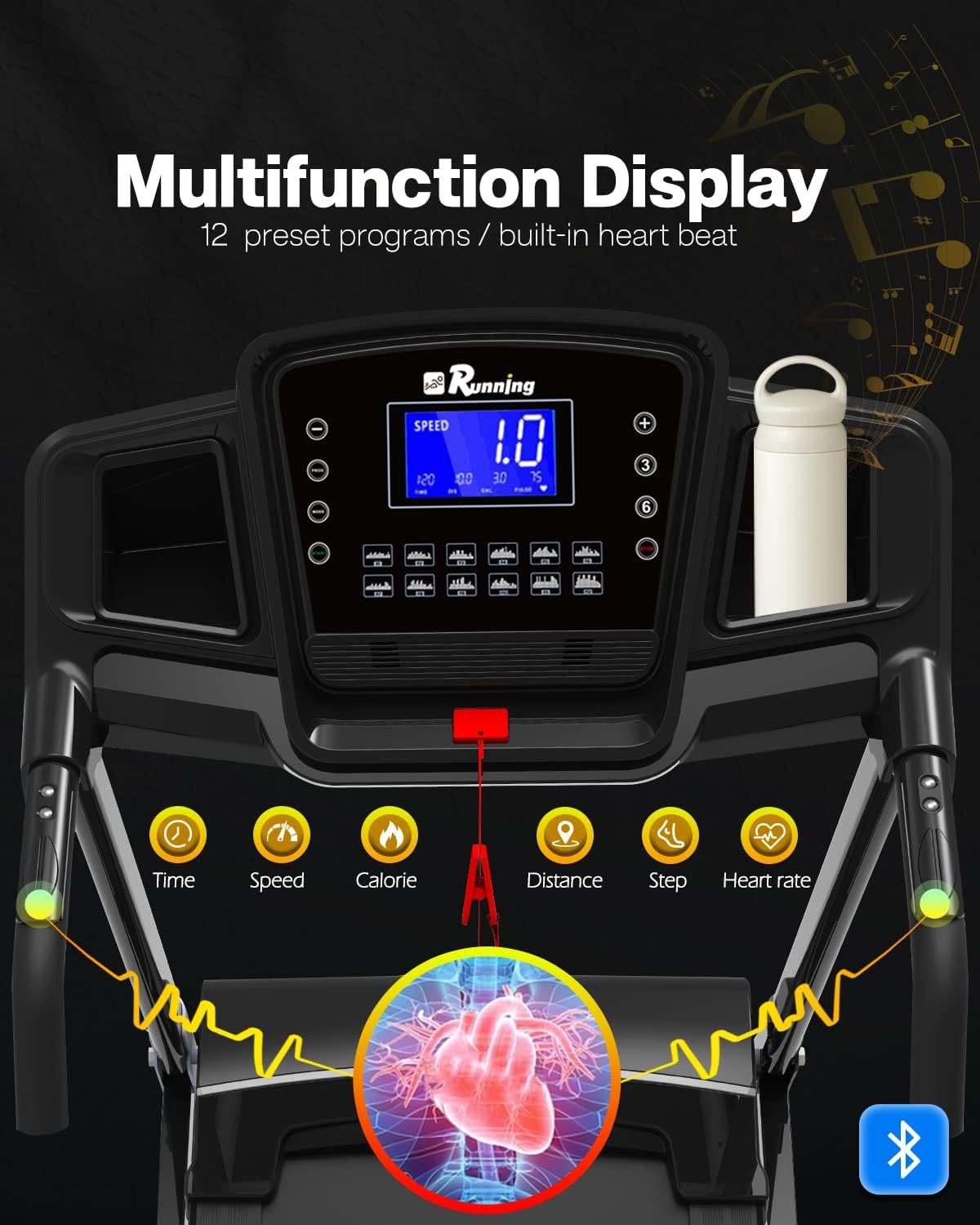 FYC Folding Treadmill for Home with Incline 330lb Weight Capacity 3.5HP Portable Electric Treadmill with Bluetooth, 12 Preset Programs Exercise Running Machine Easy Assembly