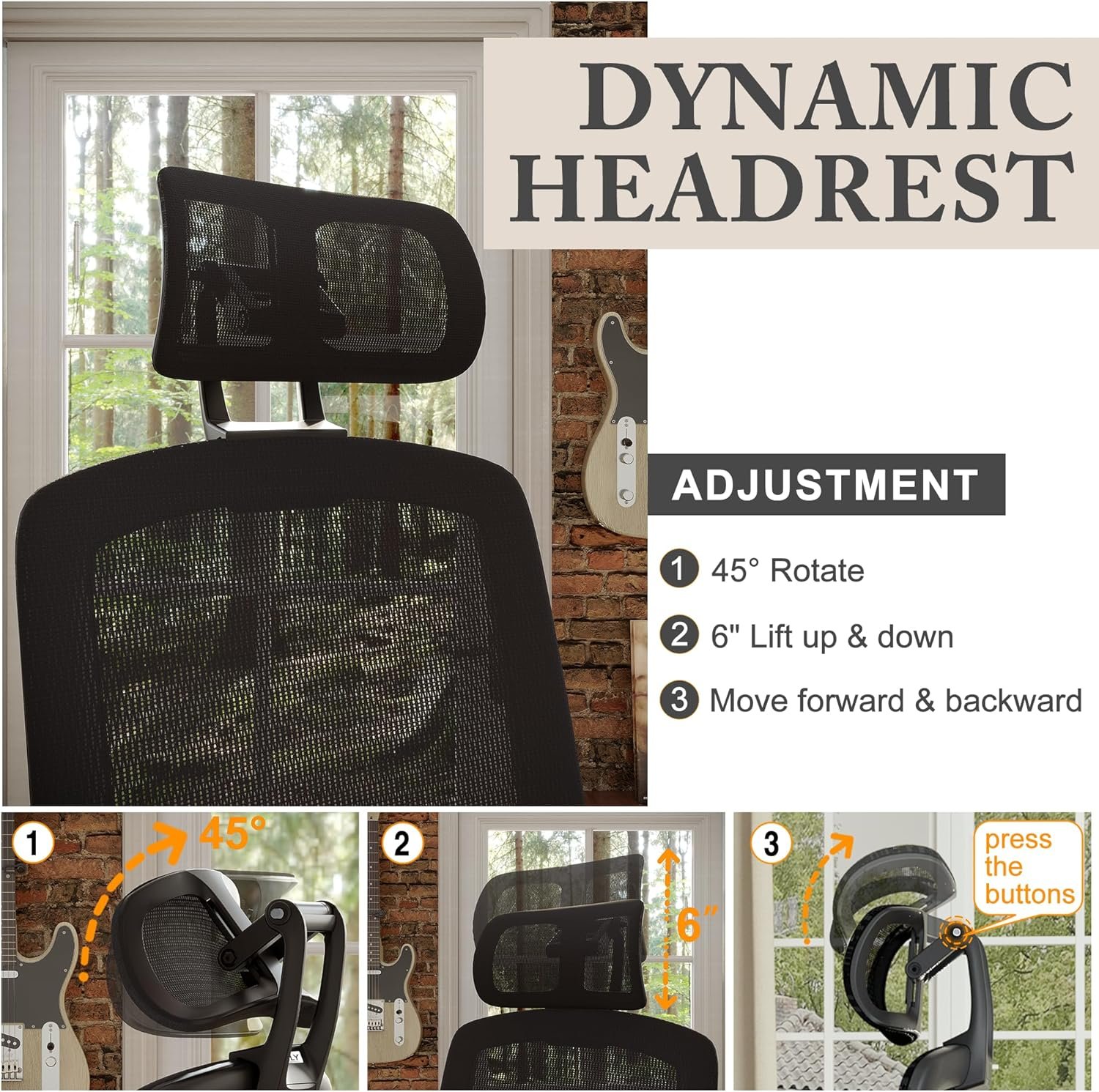 【ERGONOMIC MESH CHAIR】- Owning an ergonomic office chair that full of adjustments, you can easily adjust it throughout the day for the best ergonomics. To adjust the headrest height(3 in) and angle(45°) for great neck support. 4 supporting points and mesh back, promote the natural curve of the spine. For 6~8 hours sitting, breathable mesh material is ideal.