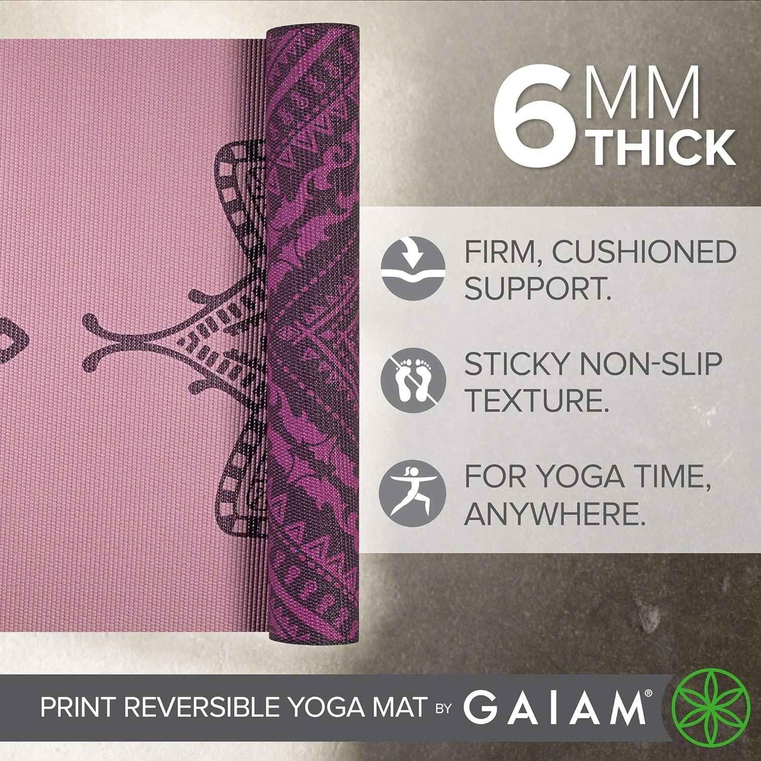 Gaiam Yoga Mat – Premium 6mm Print Reversible Extra Thick Non Slip Exercise & Fitness Mat for All Types of Yoga, Pilates & Floor Workouts (68″ x 24″ x 6mm Thick)