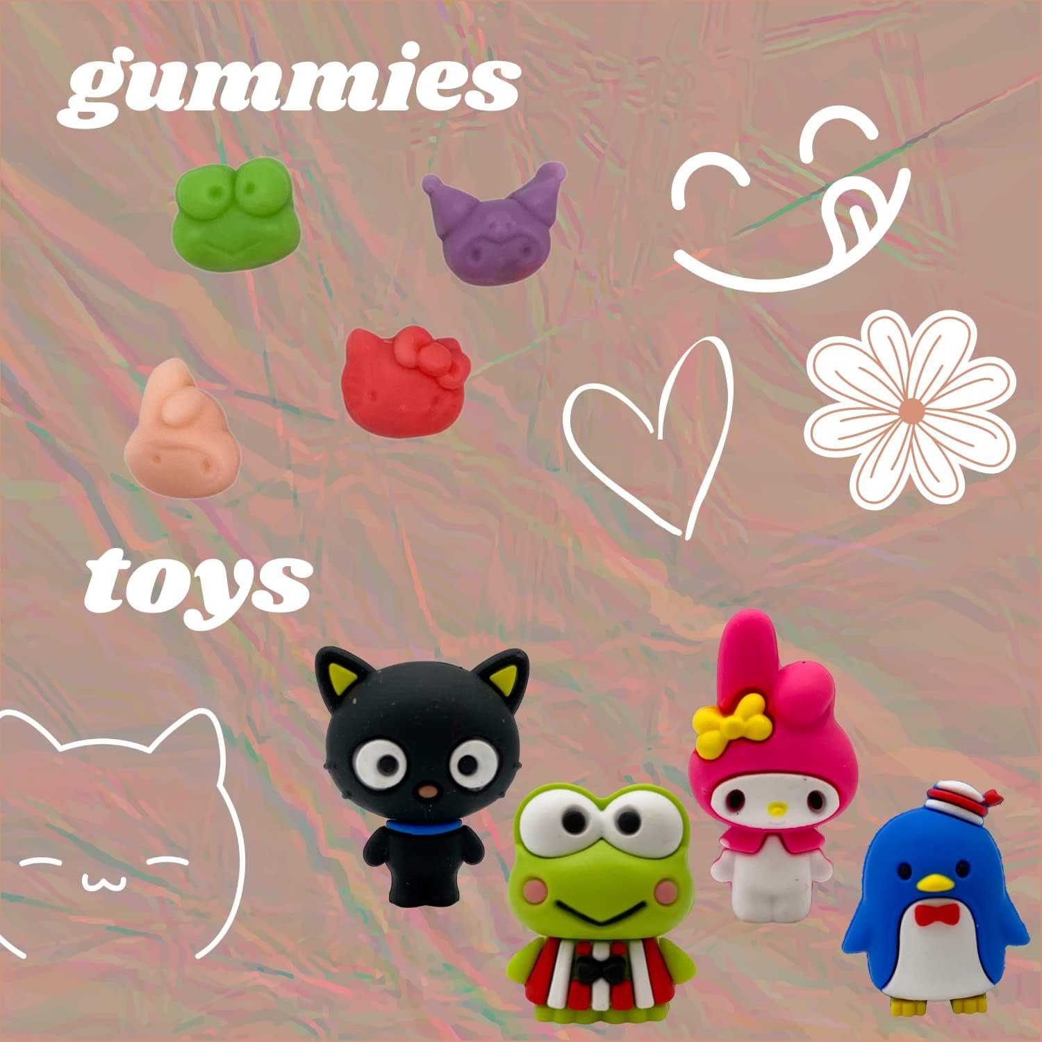 FRUIT GUMMIES can be found behind 20 of the doors. They are cute and delicious. They feature characters such as Hello Kitty, My Melody, Kuromi, and Keroppi.