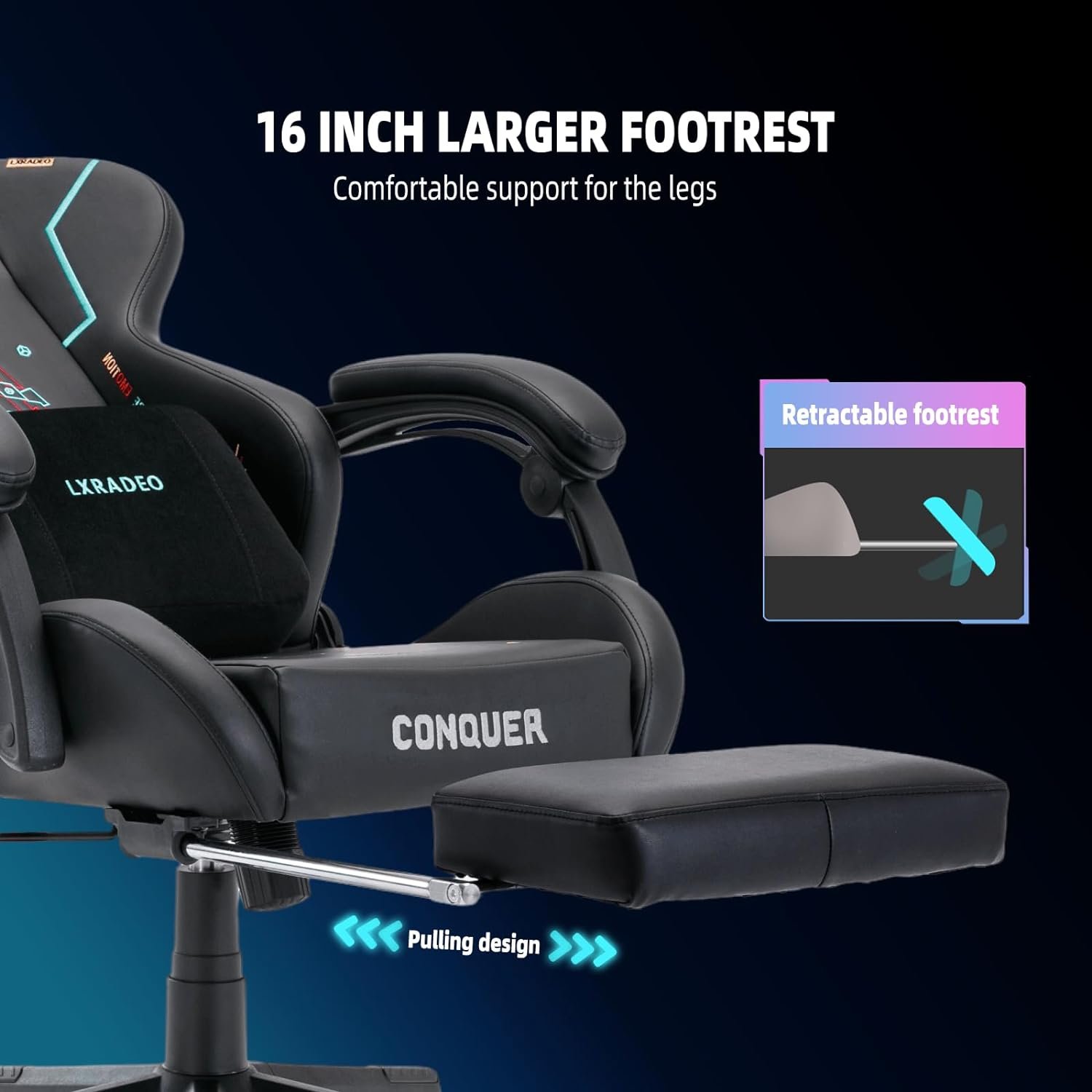 Designed to Meet Your Every Need:This chair boasts ergonomic design with linkage armrests that conform to your arm’s curvature, an adjustable backrest angle ranging from 90° to 165°, a retractable 16-inch footrest, and a seat height adjustable between 18 to 21 inches. All these features have been meticulously designed to provide you with a comfortable experience suitable for various usage scenarios.