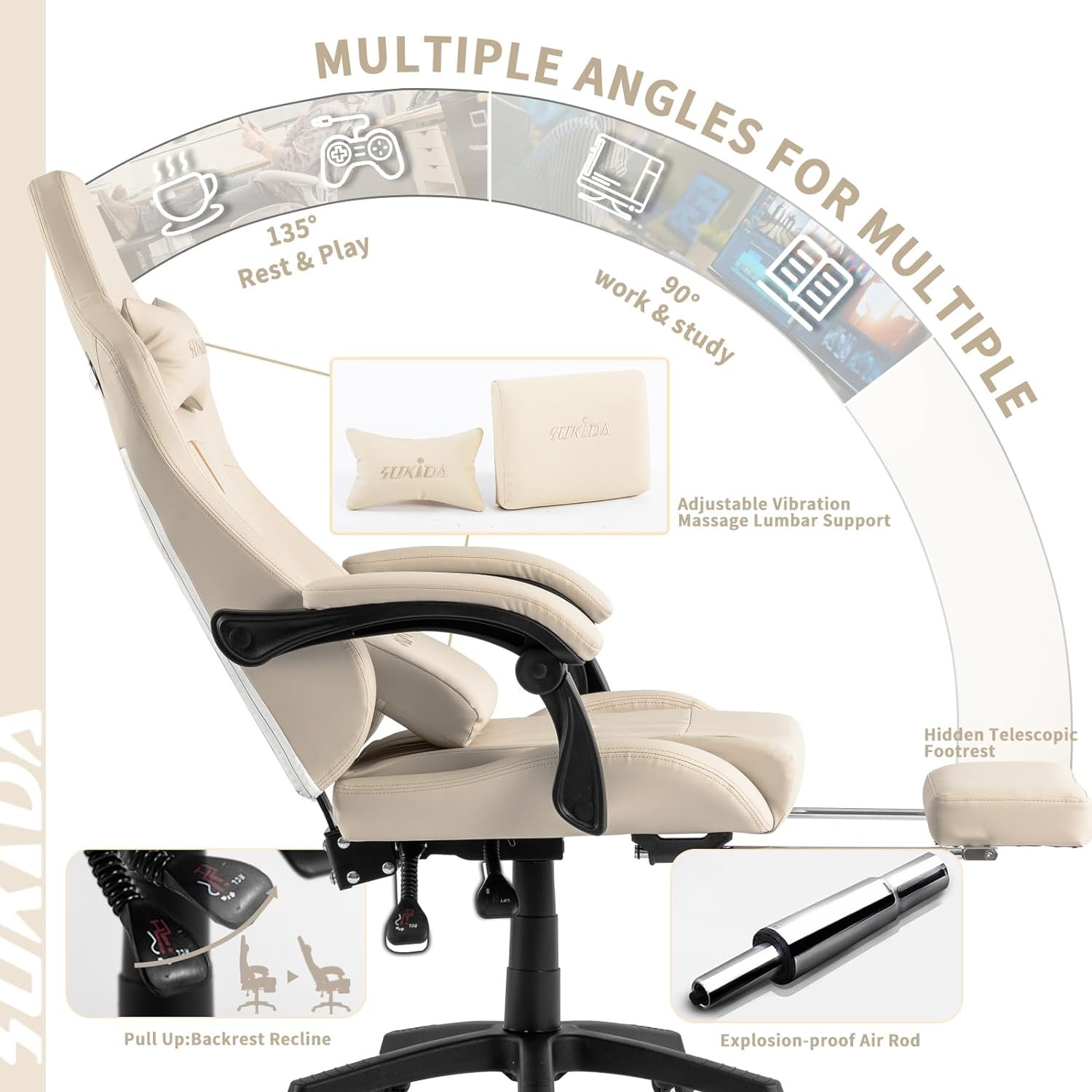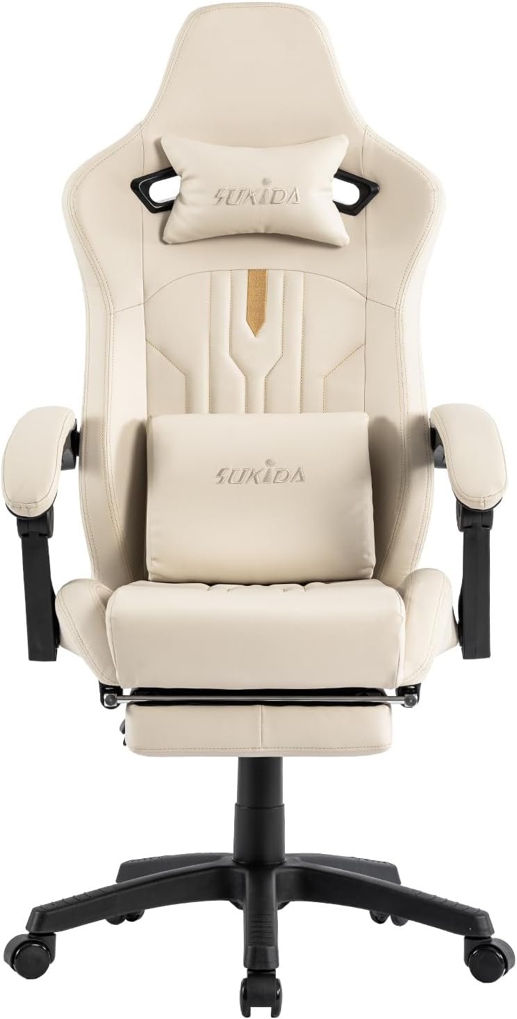 ➤High-quality materials: Computer gaming chair cushions, backrest, and armrest filled with high-density foam with soft PU leather cover, both comfortable and beautiful, water and dust resistant, and easy to clean. SUKIDA gaming chair is your ideal choice for working, studying, and gaming.