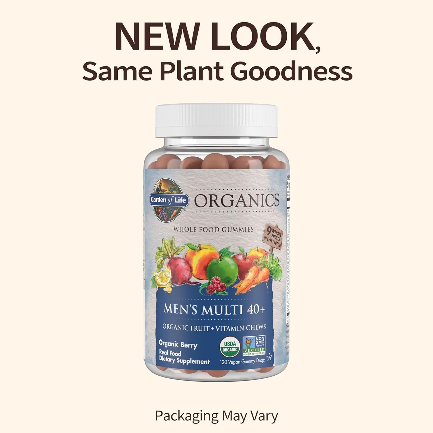Garden of Life Organics Men 40+ Gummy Vitamins – Berry – Certified Organic, Non-GMO, Vegan, Kosher Complete Multi – Methyl B12, C & D3 – Gluten, Soy & Dairy Free, 120 Real Fruit Gummies