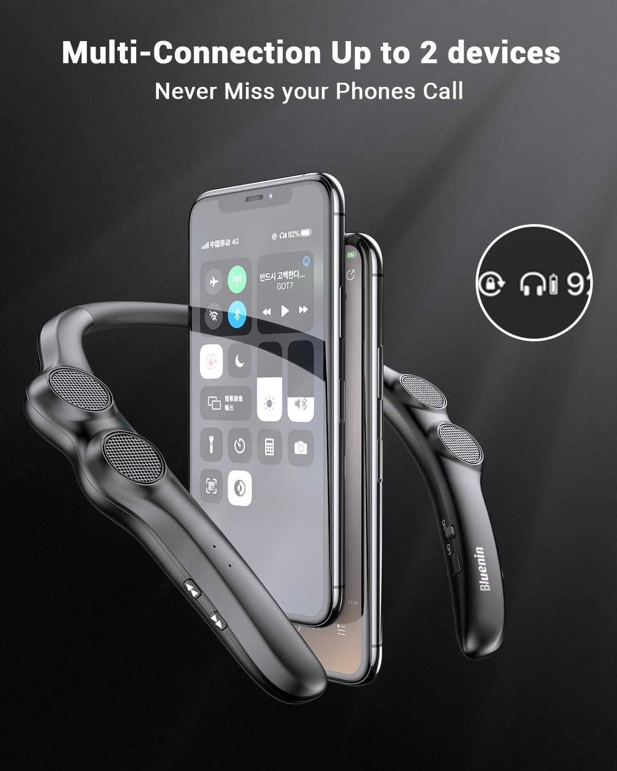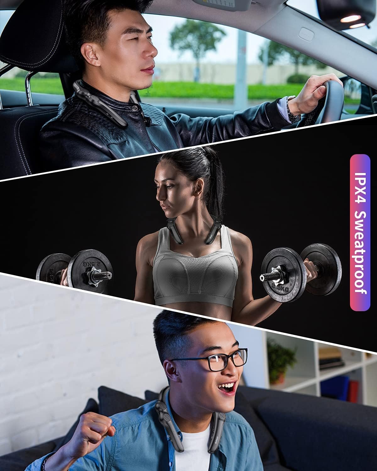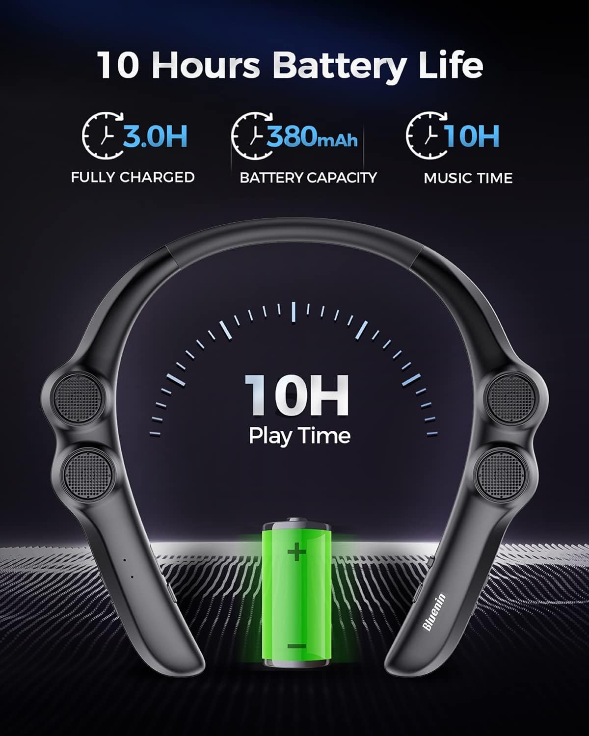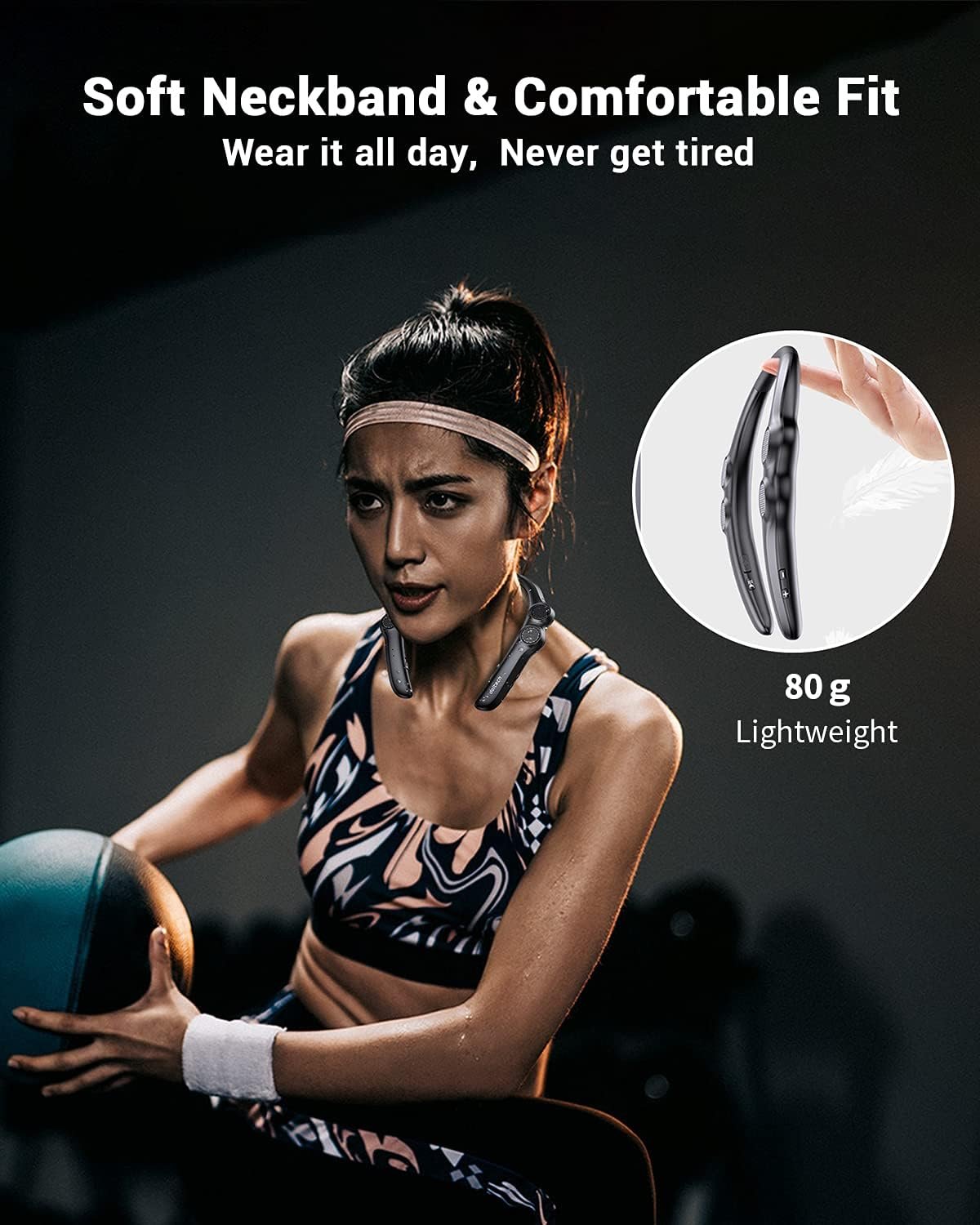 【Neckband And Wearable Design】 Comfortable wearing feeling based on ergonomics,made with flexible rubber neckband,once you put this band around your neck, you’ll hardly know you’re wearing it and get an unique immersive sound experience.