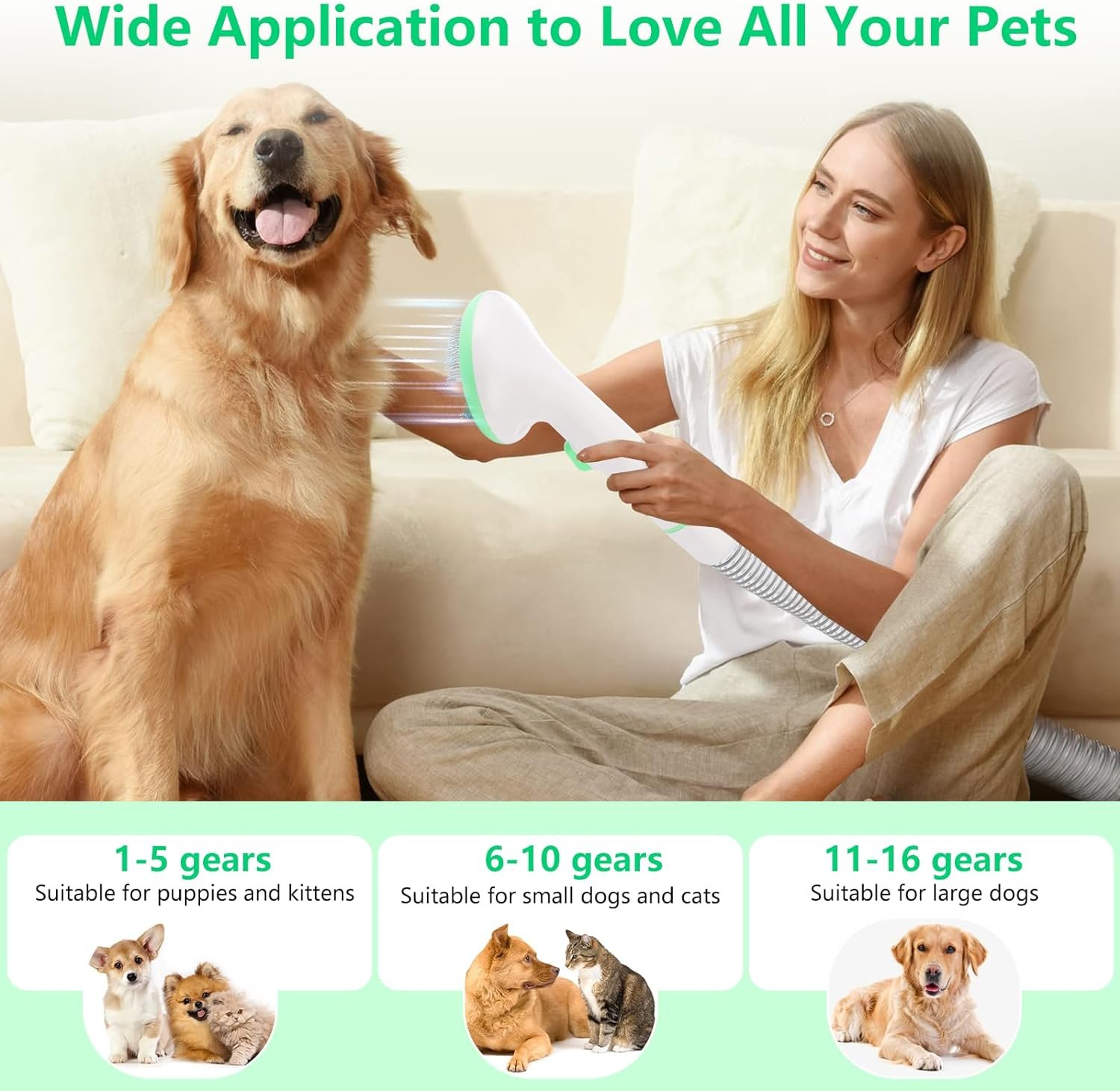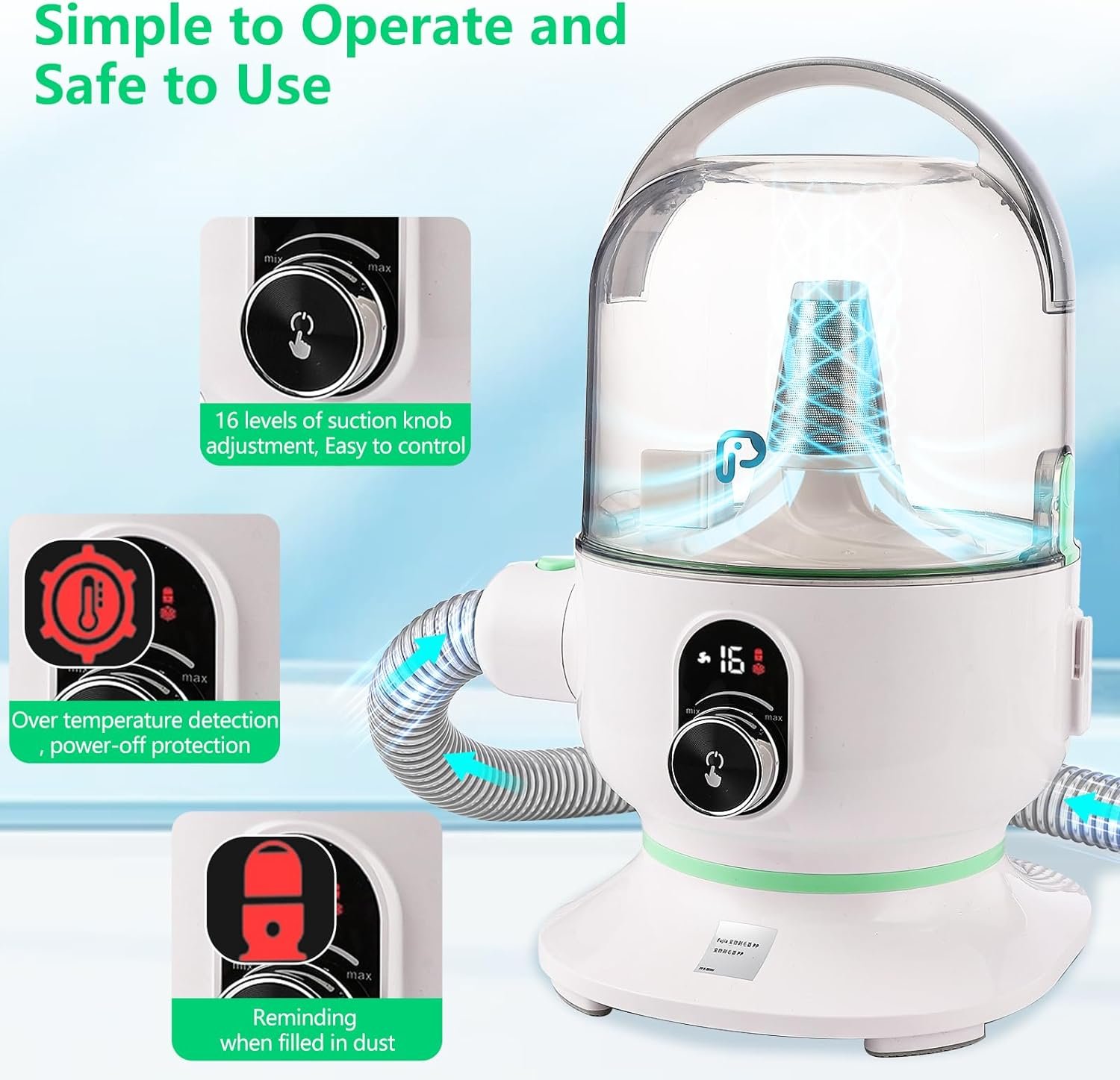 【16 levels of suction adjustment】 Our pet groomer has a super suction of 13.4Kpa, which is divided into 16 gears for adjustment, and can collect 99% of pet hair into the vacuum container.