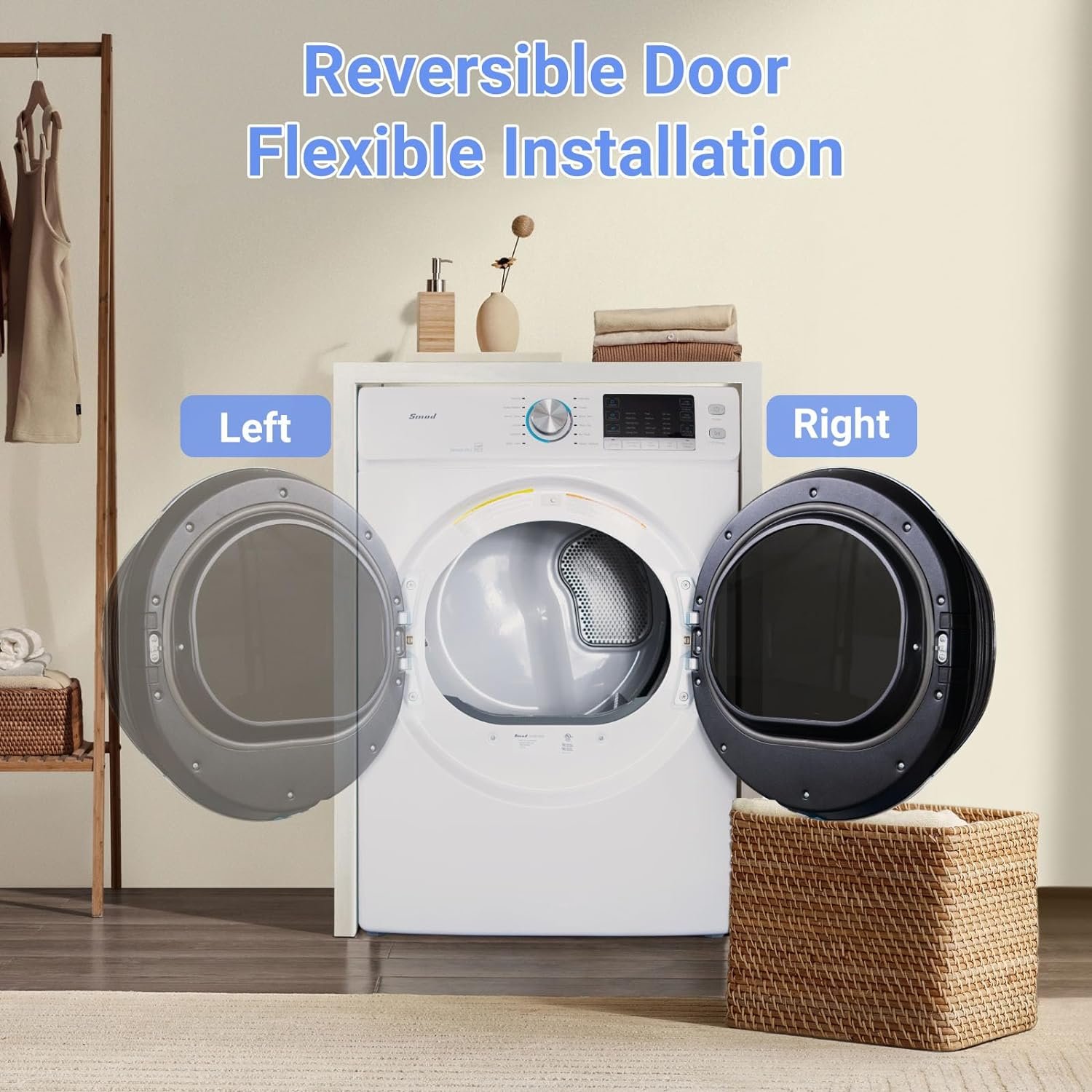 【User-friendly Electric Dryer Machine–Stackable & Flexible installation】: The clothes dryers have different 3-way exhaust options( rear, left & bottom), allowing you to choose the most suitable ventilation method based on their housing structure and personal preferences. This dryer machine is designed to be installed not only freestanding and built-in but also for stacking installation.