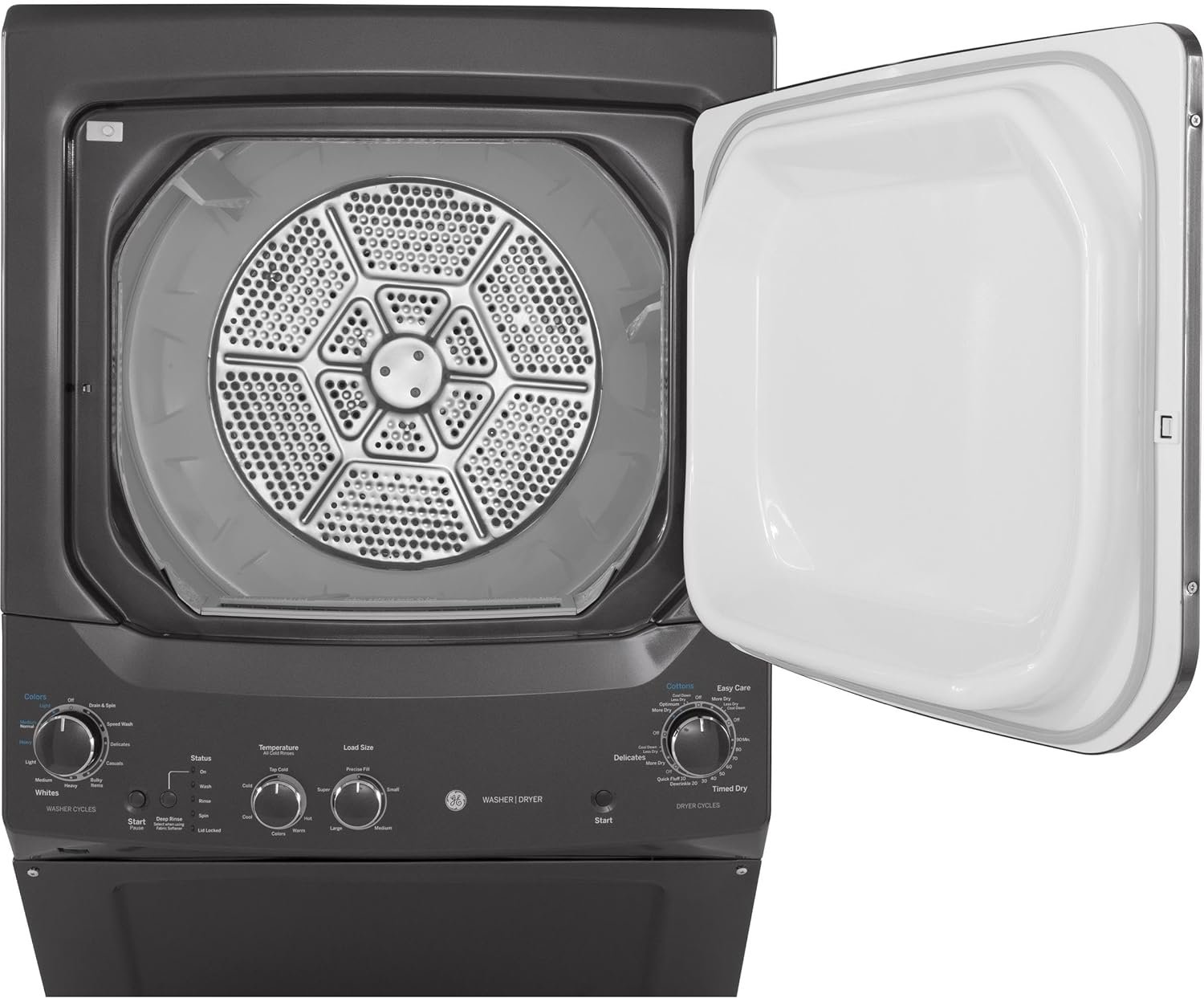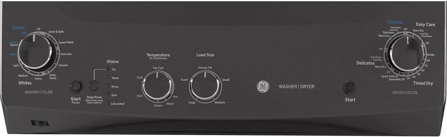 GE Appliances is your home for the best kitchen appliances, home products, parts and accessories, and support. Rotary- electromechanical controls (dryer) 11 wash cycles 6 wash / rinse temperatures Dimensions: 75 7/8 H x 26 3/4 W x 30 7/8 D Rotary- electromechanical controls (dryer) Allow fast, easy cycle selection 11 wash cycles Cycles are designed to specifically handle various fabrics and soils 6 wash / rinse temperatures Select the right temperature for ideal wash results 1 wash / spin speed combination Speeds are matched to fabric type for great clothes care Auto-load sensing with 4 water levels Washer will automatically measure the load size and add just the right amount of water, or choose your own Rotary-electronic controls (washer) Simplify cycle selection Quick Specs Installation Instructions Use and Care Manual Energy Guide CAD Files 3D CAD Files 2D Plan CAD Files 2D Elevation