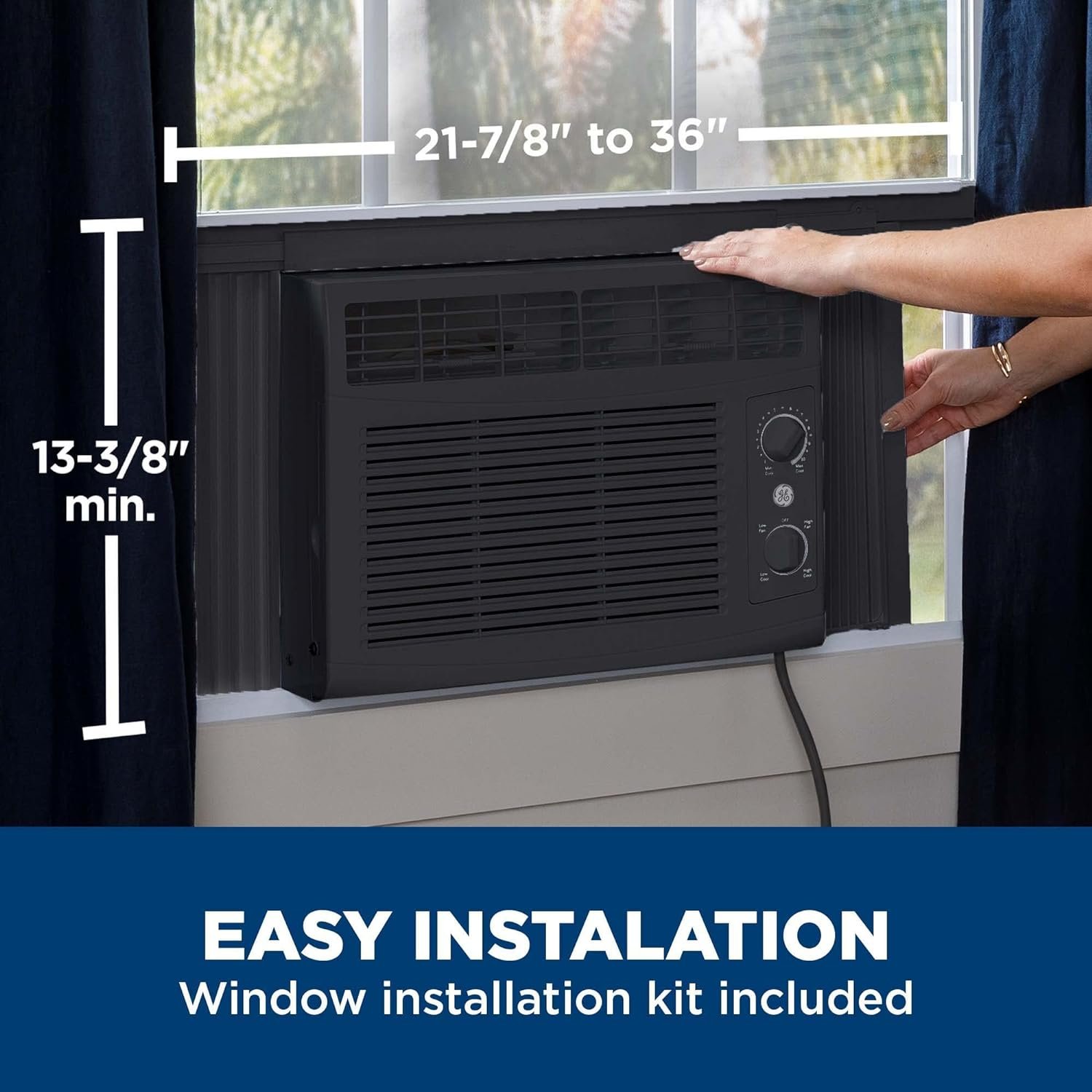 GE 5000 BTU MECHANICAL WINDOW AIR CONDITIONER – Designed to efficiently cool rooms up to 150 sq ft; easy install kit included so you can start cooling right away