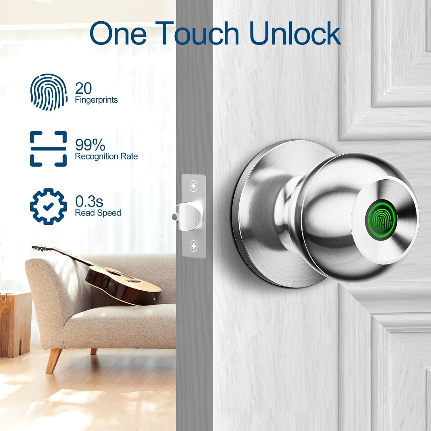 Fingerprint Unlock: Smart door lock stores up to 20 different fingerprints and unlocks in only 1 seconds with its advanced fingerprint recognition technology,you’ll be able to get into your house faster than using a key.