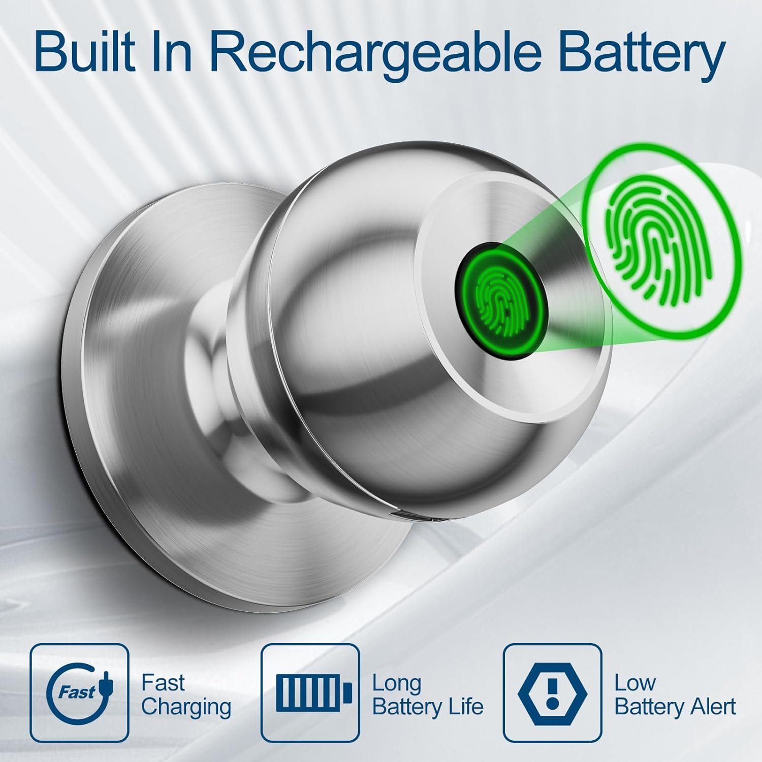 Built-in rechargeable battery: Smart door knob has long battery life and it lasts 8 months after 3 hours charging, a better choice intertor door knob for Bedroom Office Apartment. (Indoor Use Only)