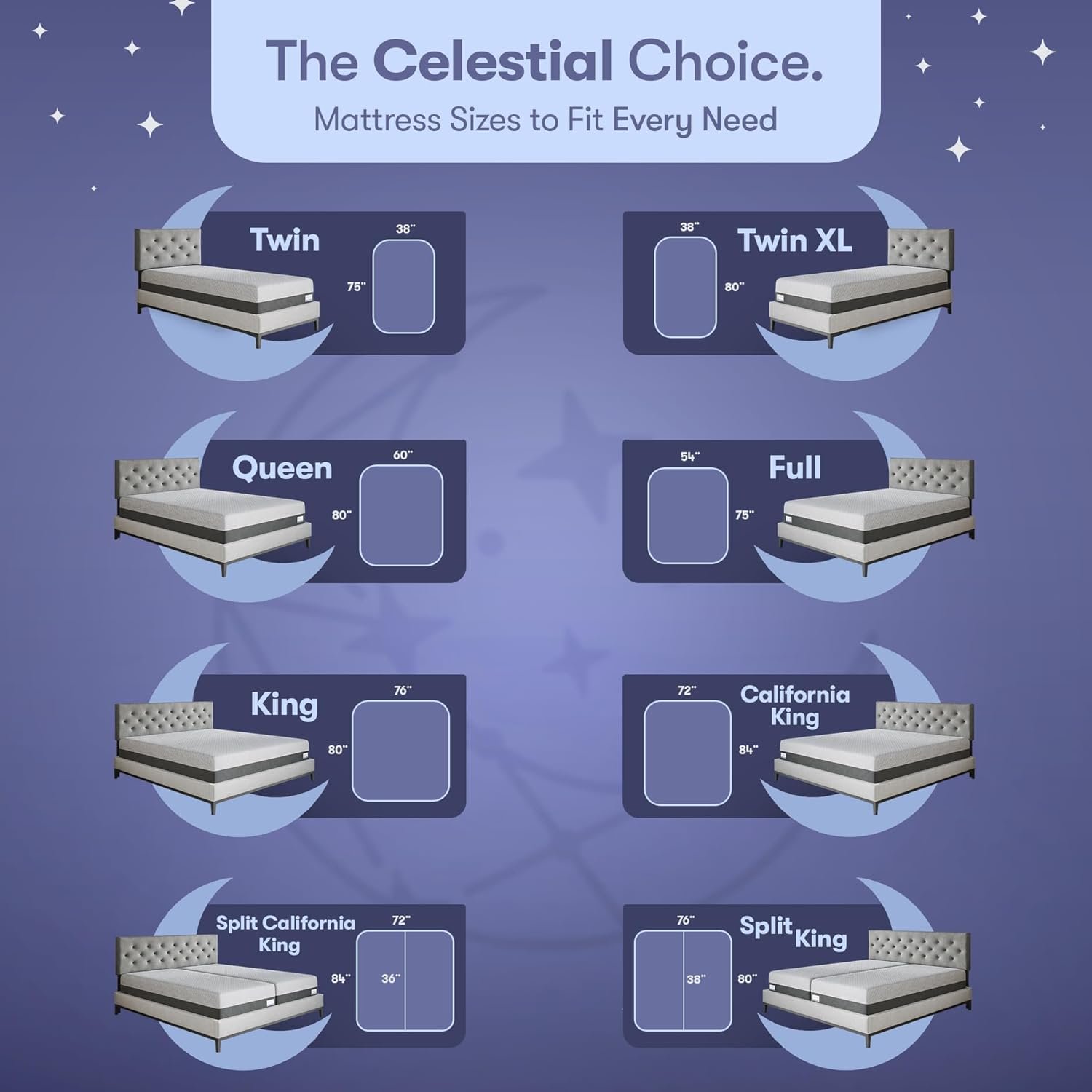 Perfect Support for Any Position: Whether you’re a side sleeper, back sleeper, stomach sleeper, or just toss and turn, Celestial Sleep has you covered. Our mattress is designed to offer optimal support, coolness, breathability, and comfort no matter how you sleep.