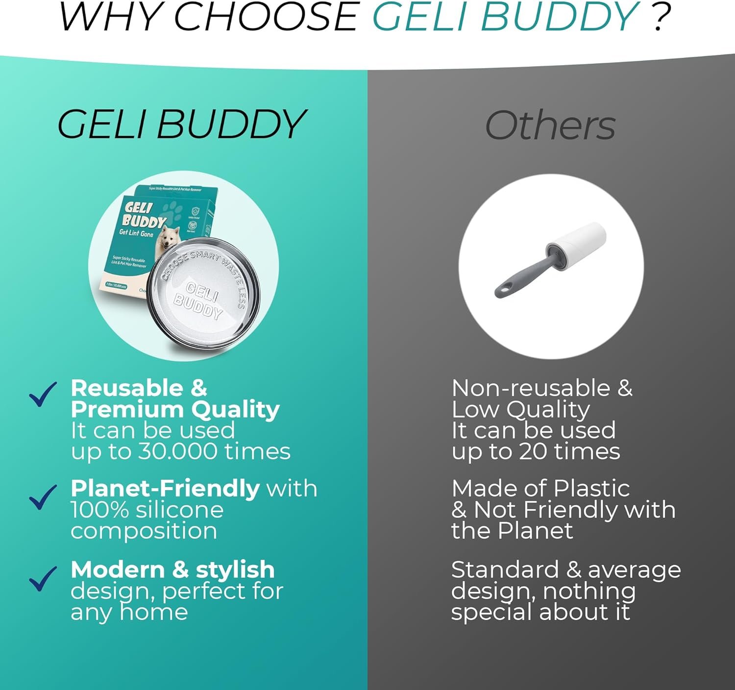 Make A Sustainable Pledge – Say goodbye to a disposable lint roller, brushes, and wasteful alternatives with Geli Buddy. Choose a cleaner planet and a spotless home, effortlessly achieved by washing it with soap and water before the next use