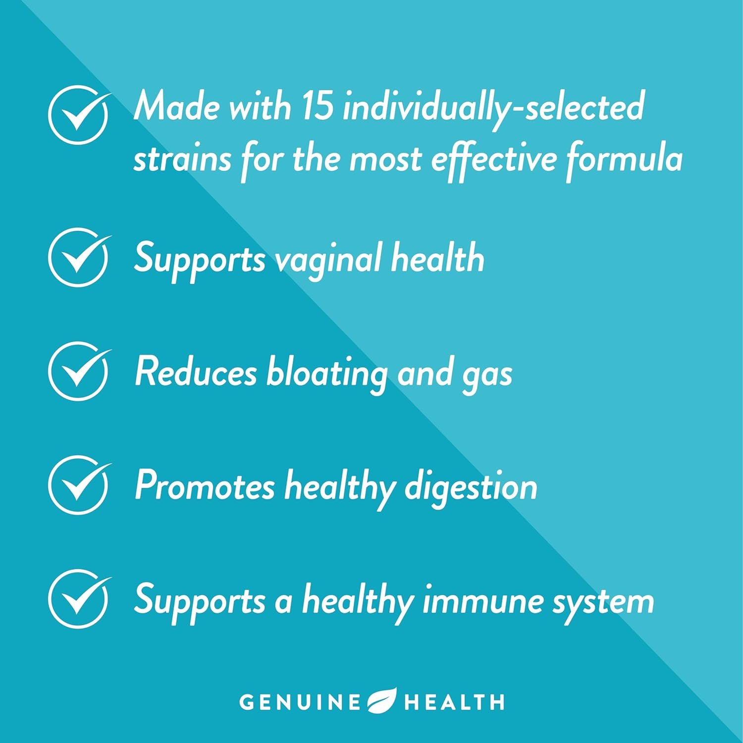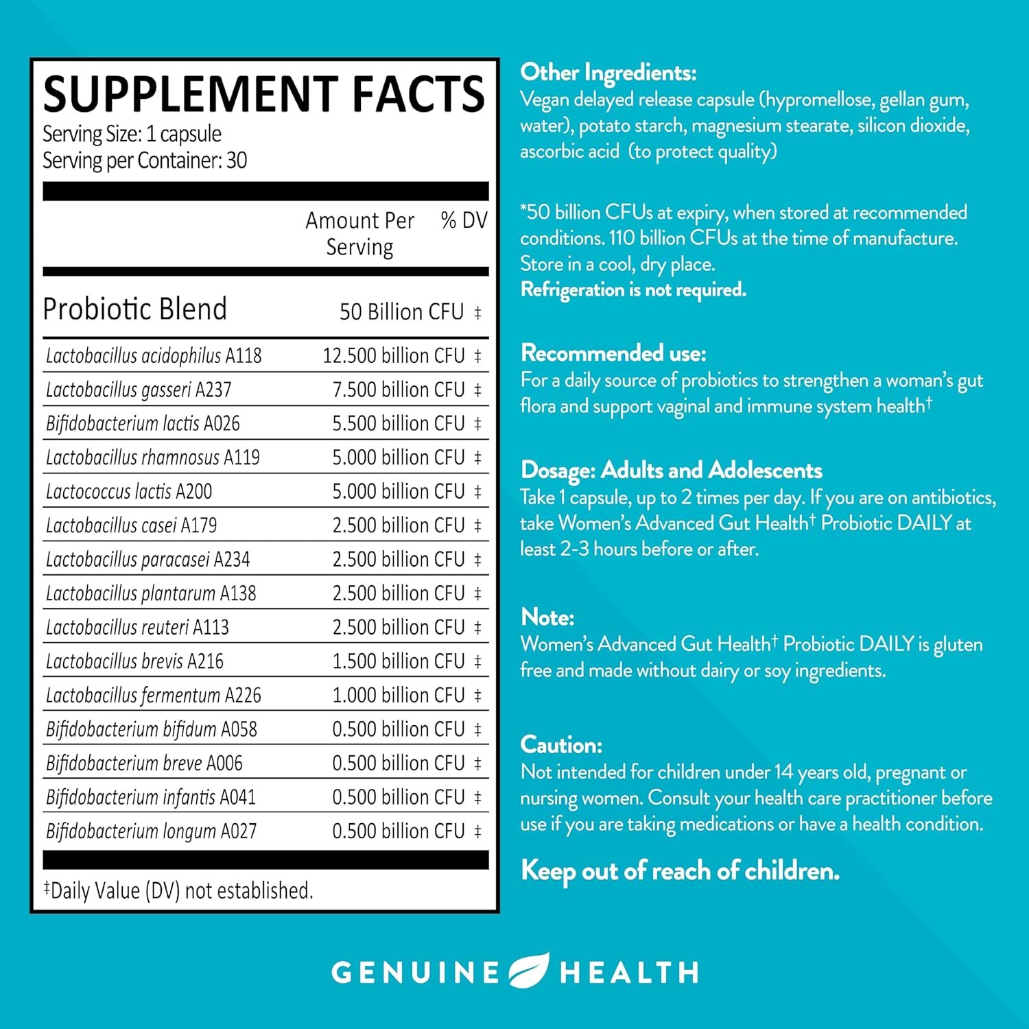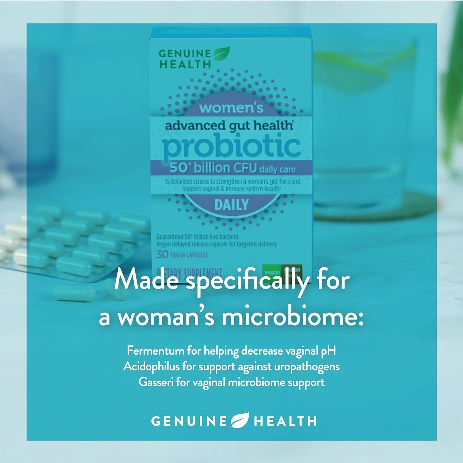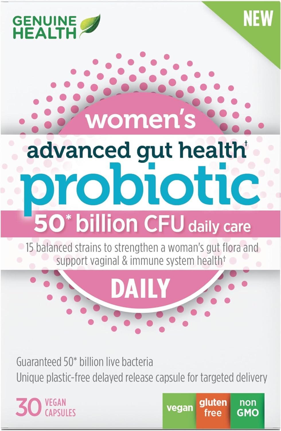 DAILY PROBIOTIC FOR WOMEN: Women’s microbiomes are unique, and your probiotic should be too! Genuine Health’s women’s probiotic helps promote digestive, vaginal, and immune health and supports relief from bloating and abdominal discomfort.